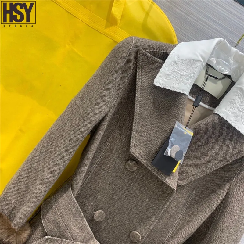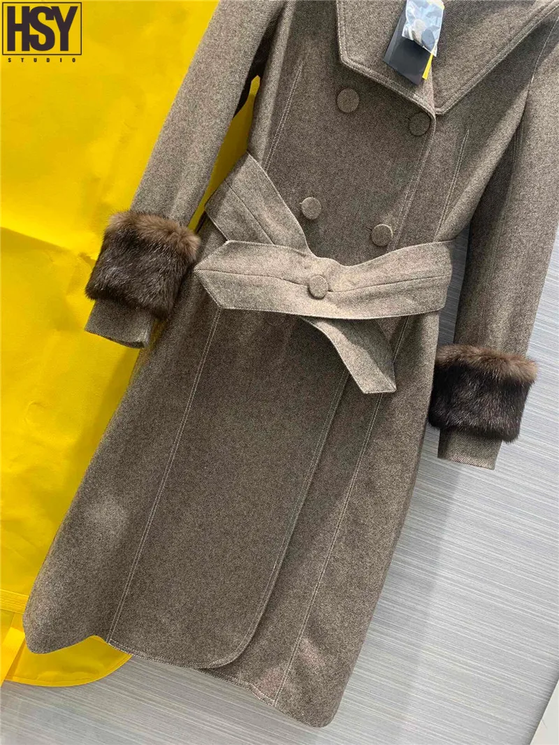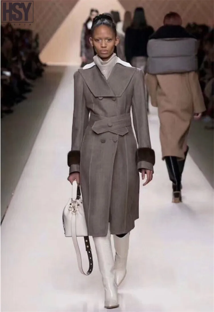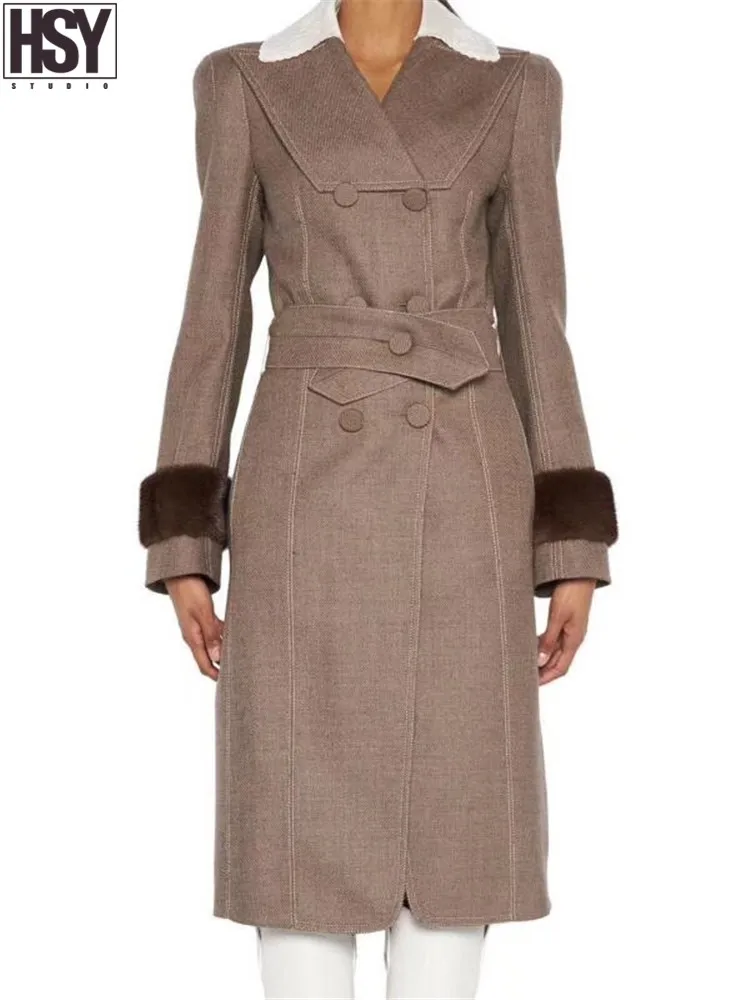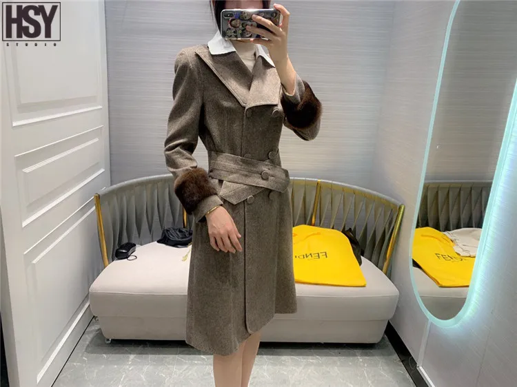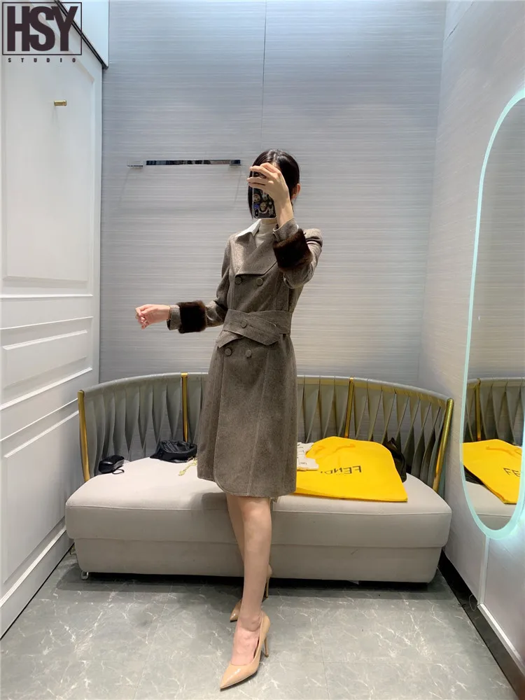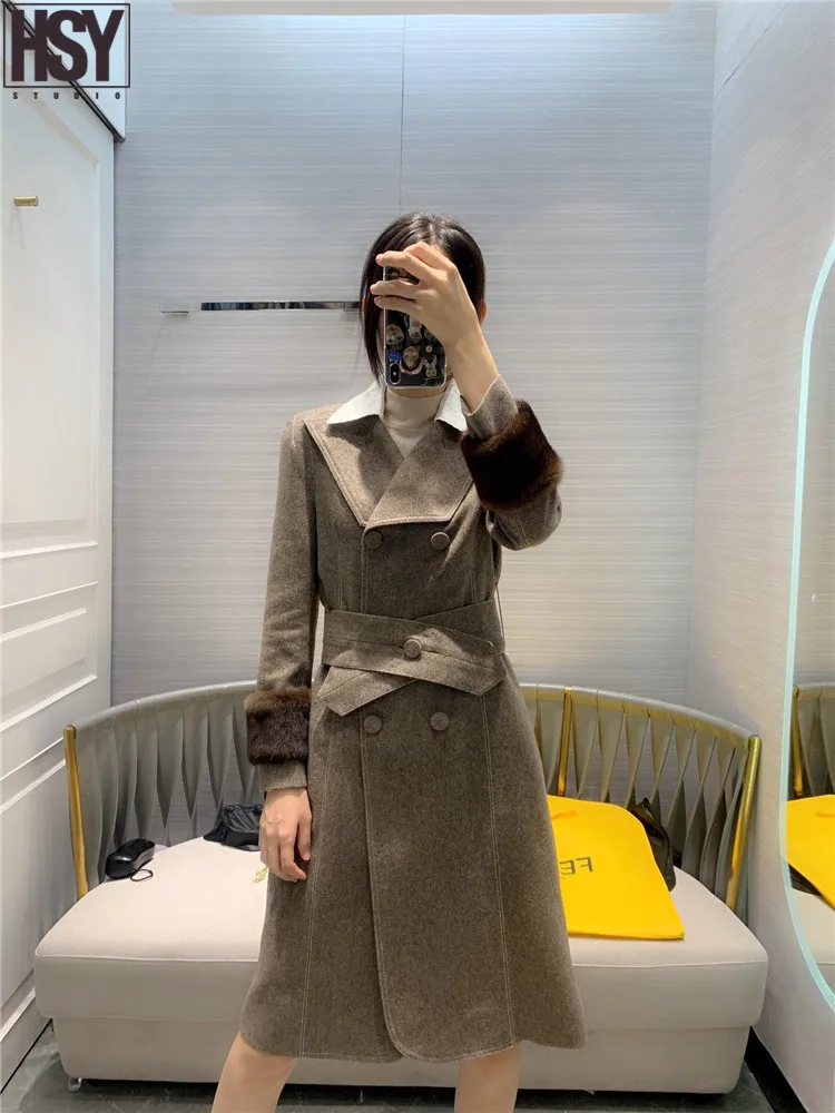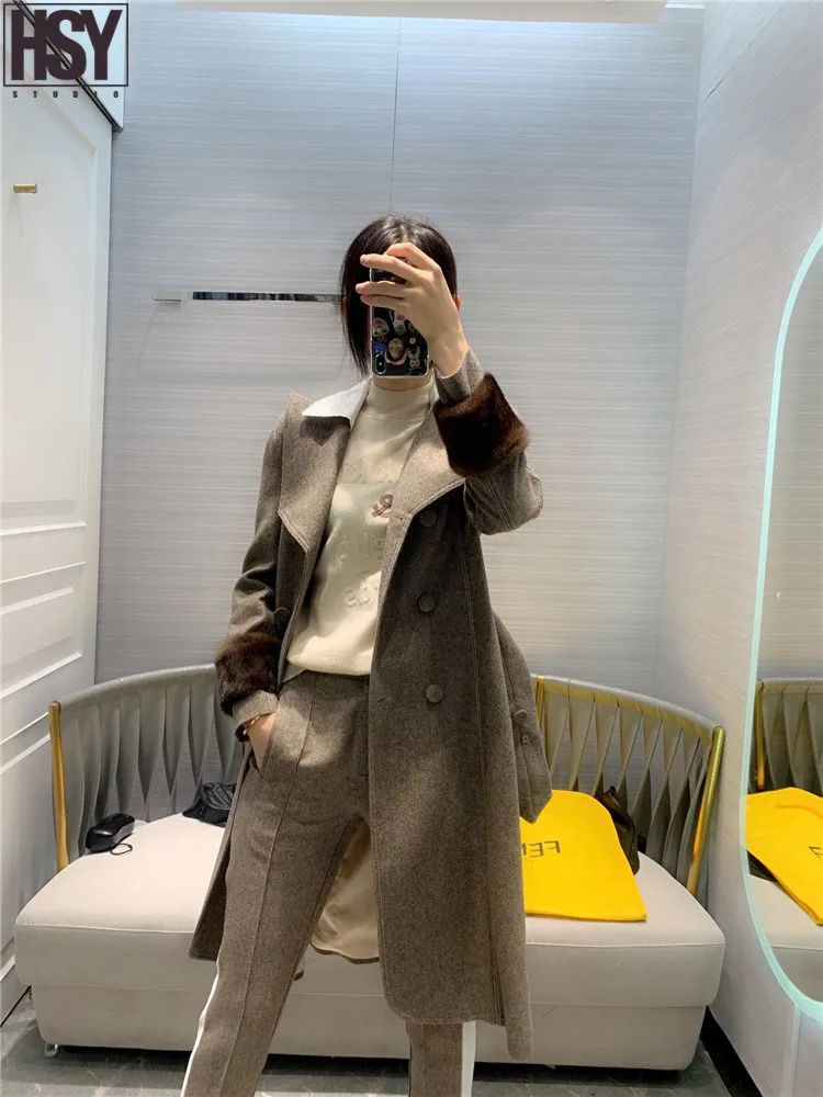 Зимнее женское плотное элегантное шерстяное пальто Vimly 2020 офисное двубортное с отворотами однотонное