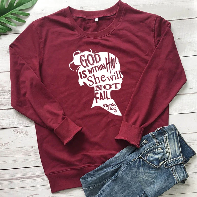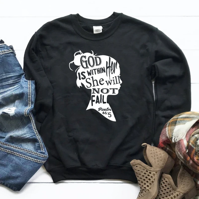 God Is inher She'll Not Fail Christian Sweatshirt Женские топы для девочек, женская уличная одежда, джемперы, Прямая поставка