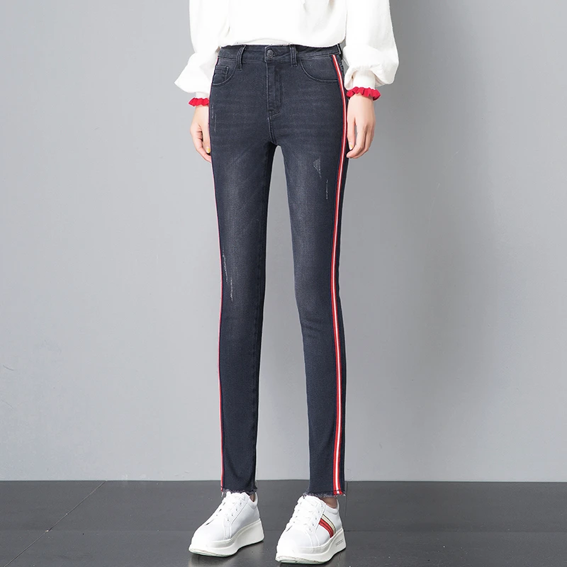2020 Весенняя мода рваные джинсы женские крутые джинсовые узкие брюки со средней