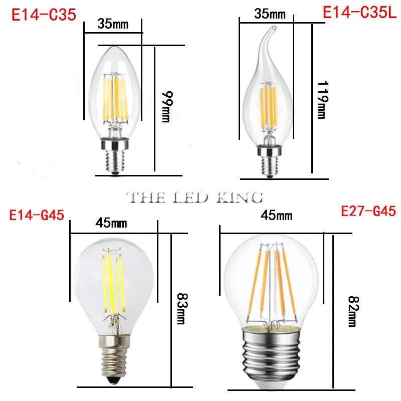 Тип товара: Светодиодная лампа Эдисона/Светодиодная лампа накаливания Тип цоколя: E14 (C35 ) ; E27 (A60, ST64 ,G95,G45); E26(A60, ST64); E12(C35) Напряжение: 220 В-240 В переменного тока Поддержка диммера: да/нет Цвет излучения: теплый белый, холодный белый Мощность: 2 Вт/4 Вт/6 Вт/8 Вт/12 Вт Тип светодиодный: COB Материал: стекло/алюминий Цветовая температура: 2900-3200K (теплый белый) 6000-6500K (холодный белый) Средний срок службы:> 50000 часов Цвет лампы: прозрачный, прозрачный Угол луча: 360 градусов Гарантия: 3 года Применение: спальня, гостиная/столовая, кухня, детская комната, дом/офис Привлекательная винтажная лампа накаливания Эдисона-это декоративный светильник для подвесной лампы, настольной лампы, настенной лампы и люстры. Особый дизайн и теплый светильник сделают ваш дом романтичным и очаровательным. Это идеальные лампы для украшения вашего дома, сада, офиса, бара, отеля, ресторана, кафе, кофемашины и т. Д. Это также может быть особым подарком для ваших друзей!