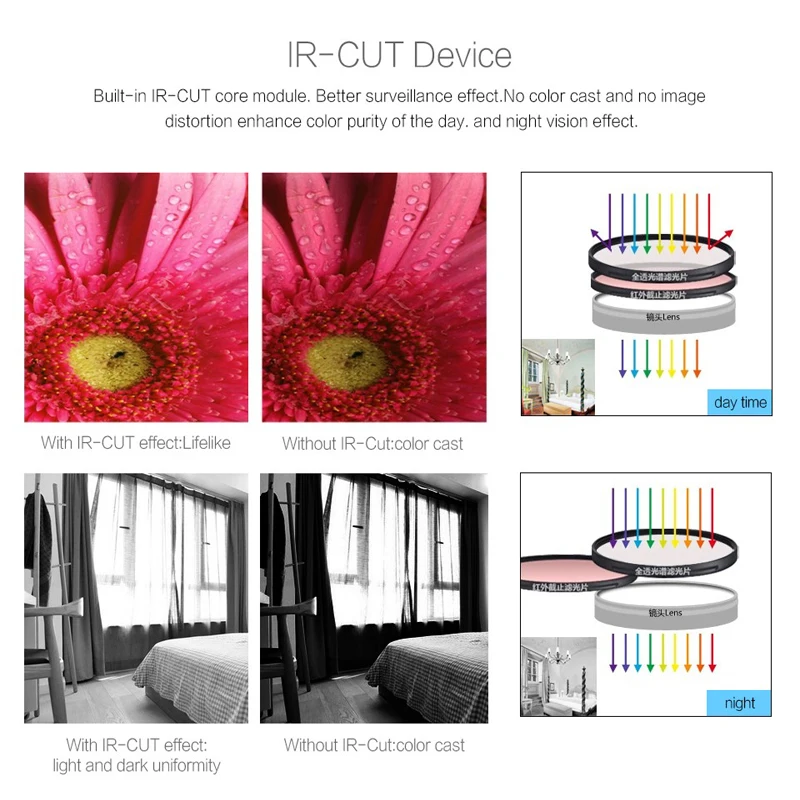 | Для работы днем и ночью | Поддержка (IR-CUT filtro con interruttore automatico) |
