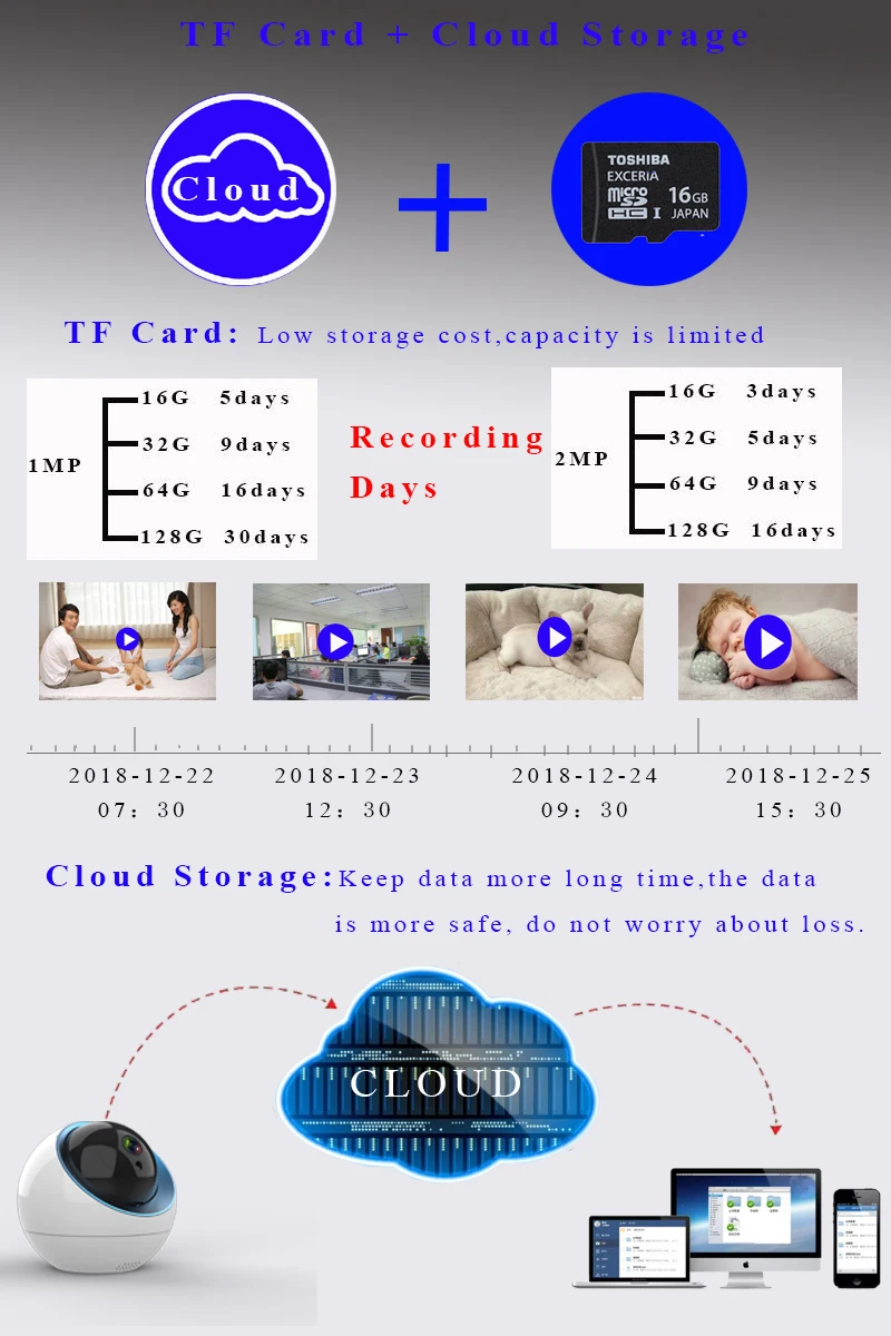 | Registrazione di stoccaggio | Carta di TF o Amazon cloud |