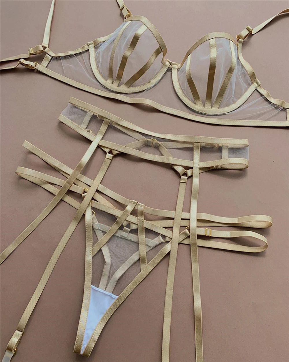 1 бюстгальтер + 1 подвязка + 1 стринги
