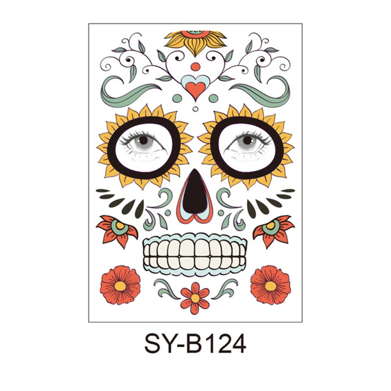Временная татуировка на лицо в стиле «День мертвых сахарных Черепов», Стикеры для макияжа на Хэллоуин, вечерние маскарадные стикеры на Хэллоуин