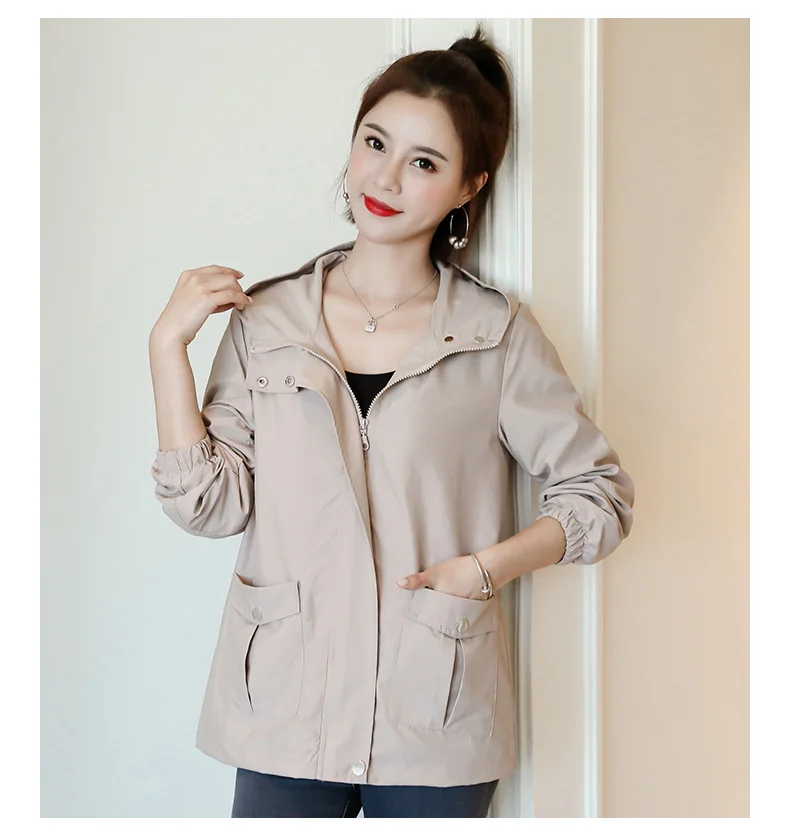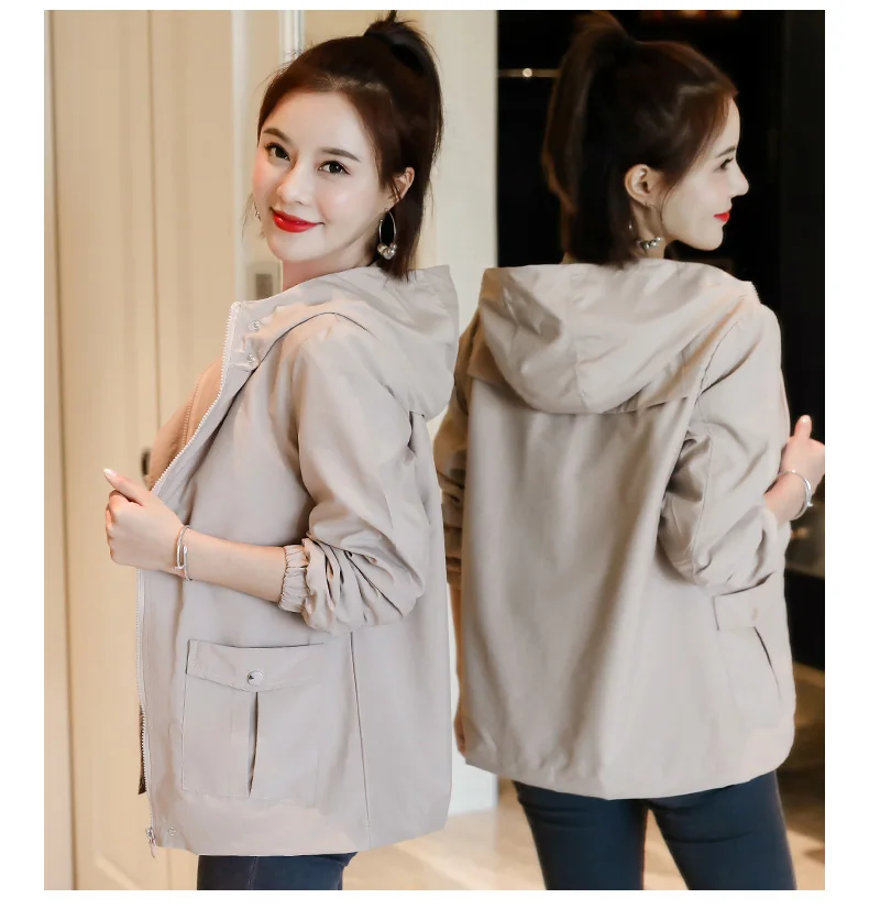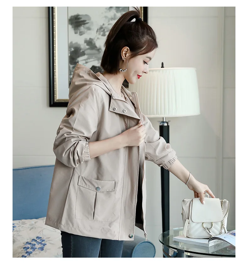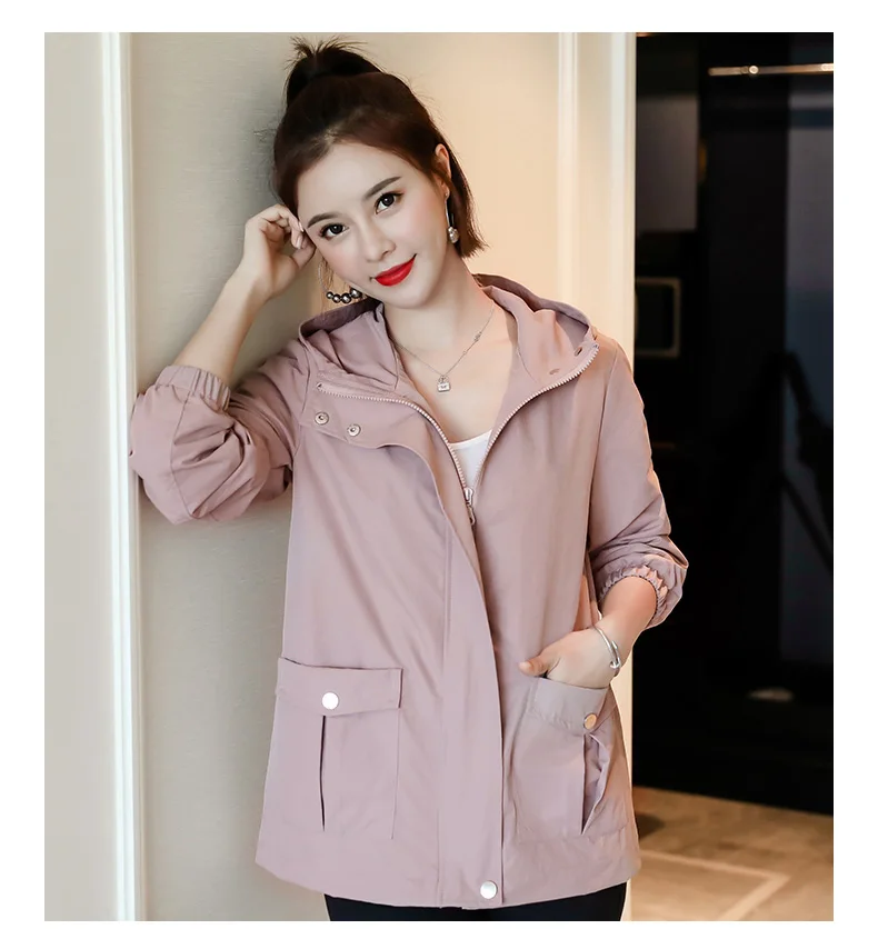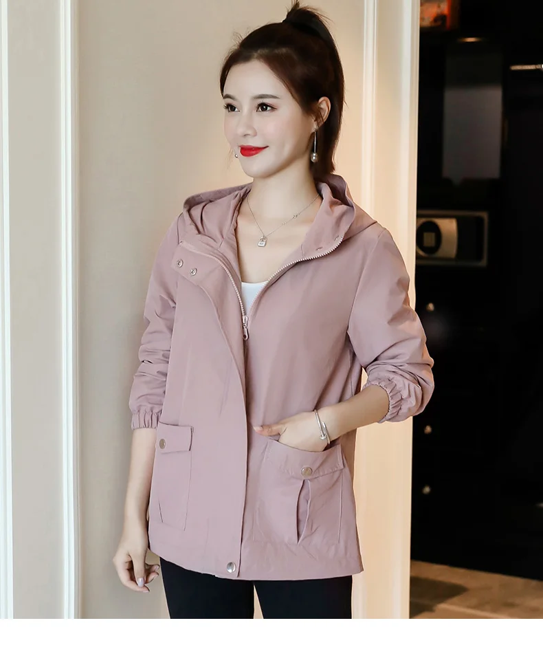 Однотонная ветровка для женщин с длинным рукавом пальто с капюшоном весна осень повседневные однотонные на молнии базовые куртки для женщин