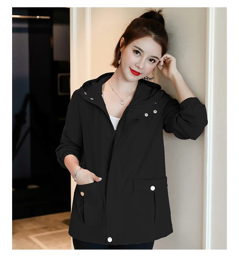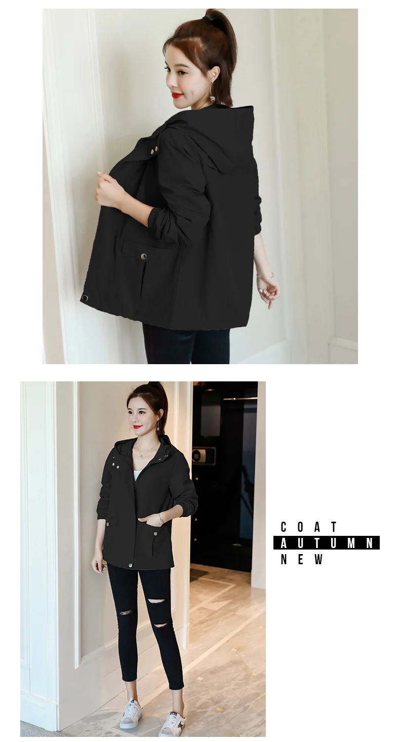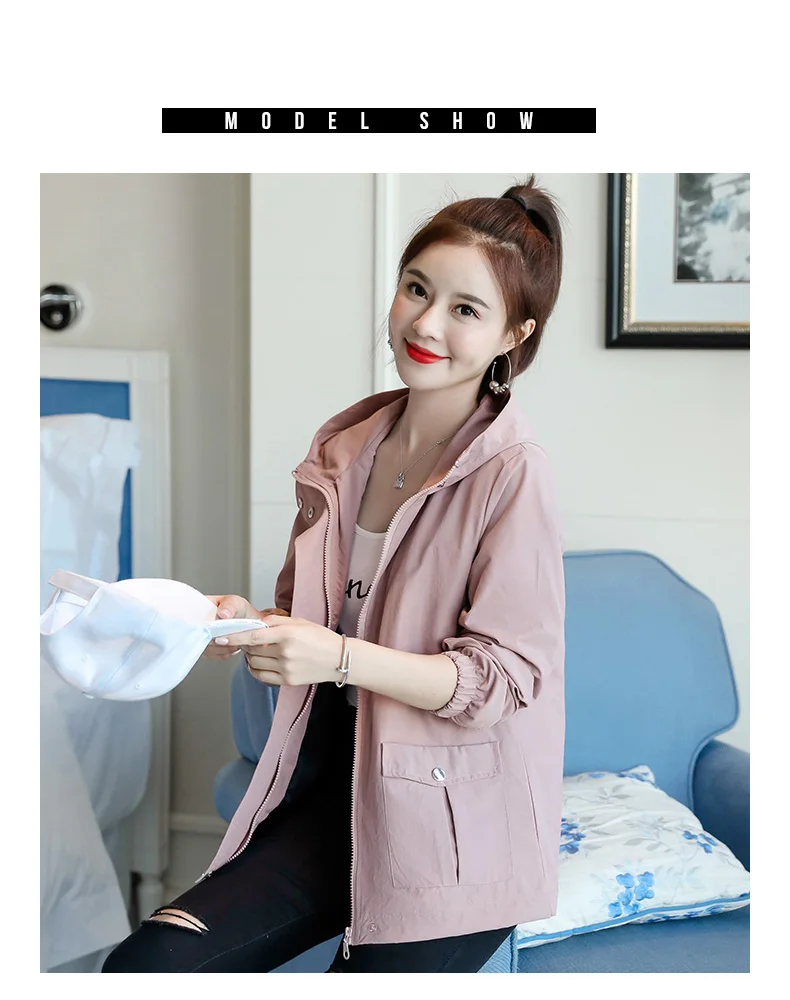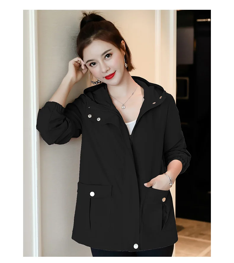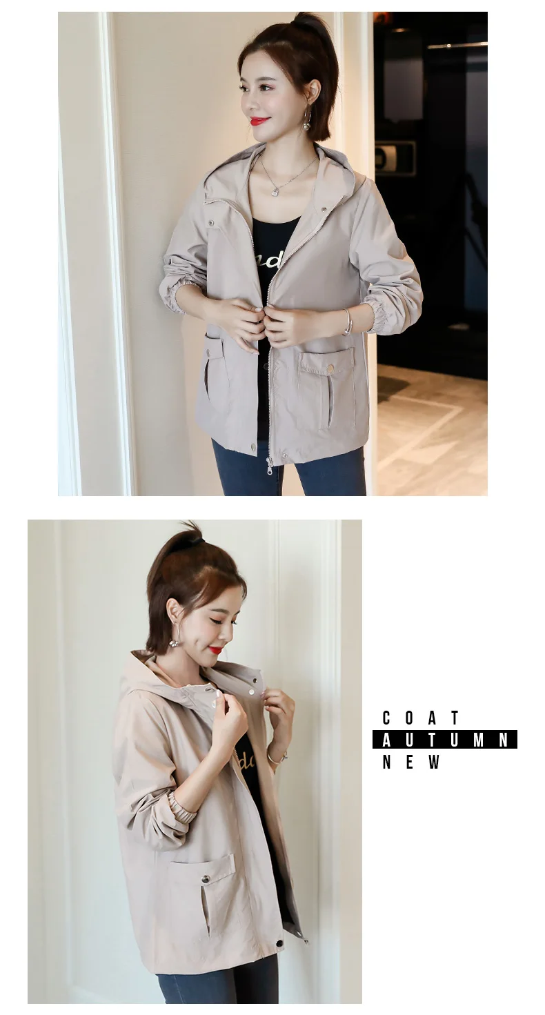 Однотонная ветровка для женщин с длинным рукавом пальто с капюшоном весна осень повседневные однотонные на молнии базовые куртки для женщин