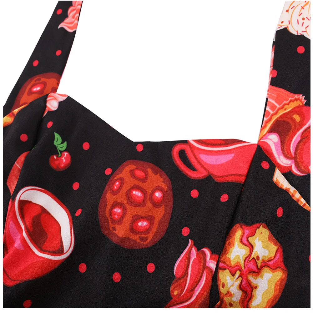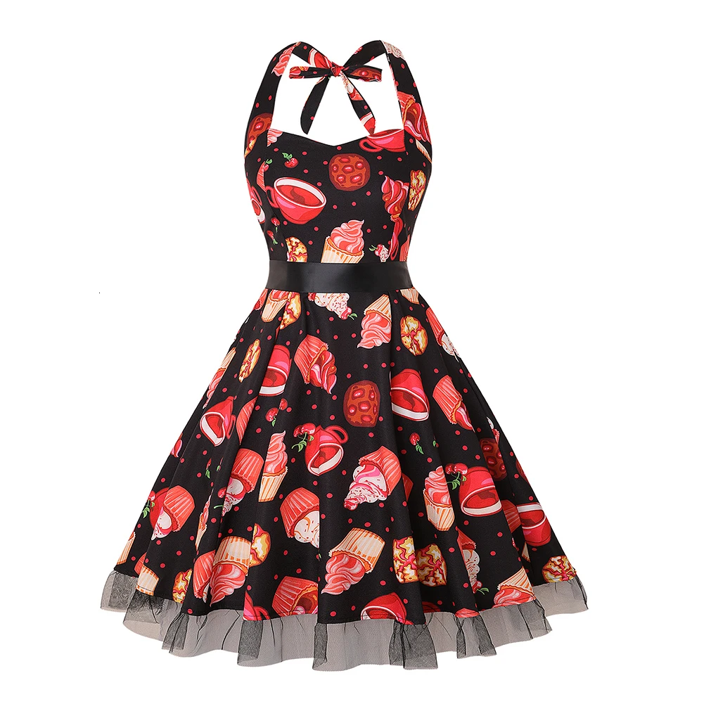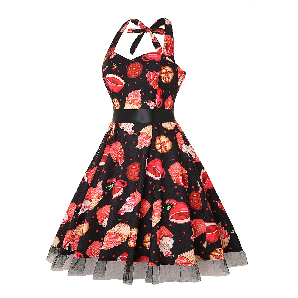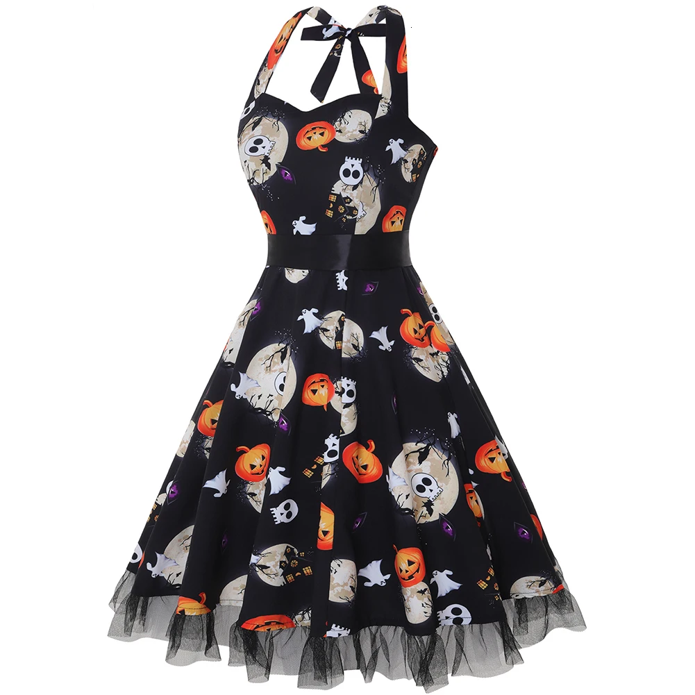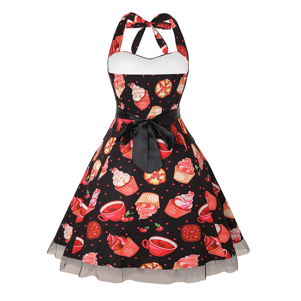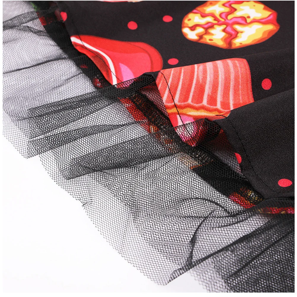 Вечерние платья на Хэллоуин в винтажном стиле, с завязками, миди, Vrouwen Jurk Schedel Cake Afdrukken Gaas