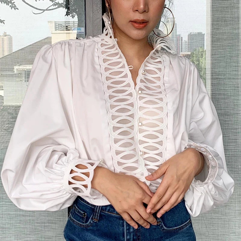F # пикантная Женская Кружевная блуза с вышивкой топы сетки шить на молнии v
