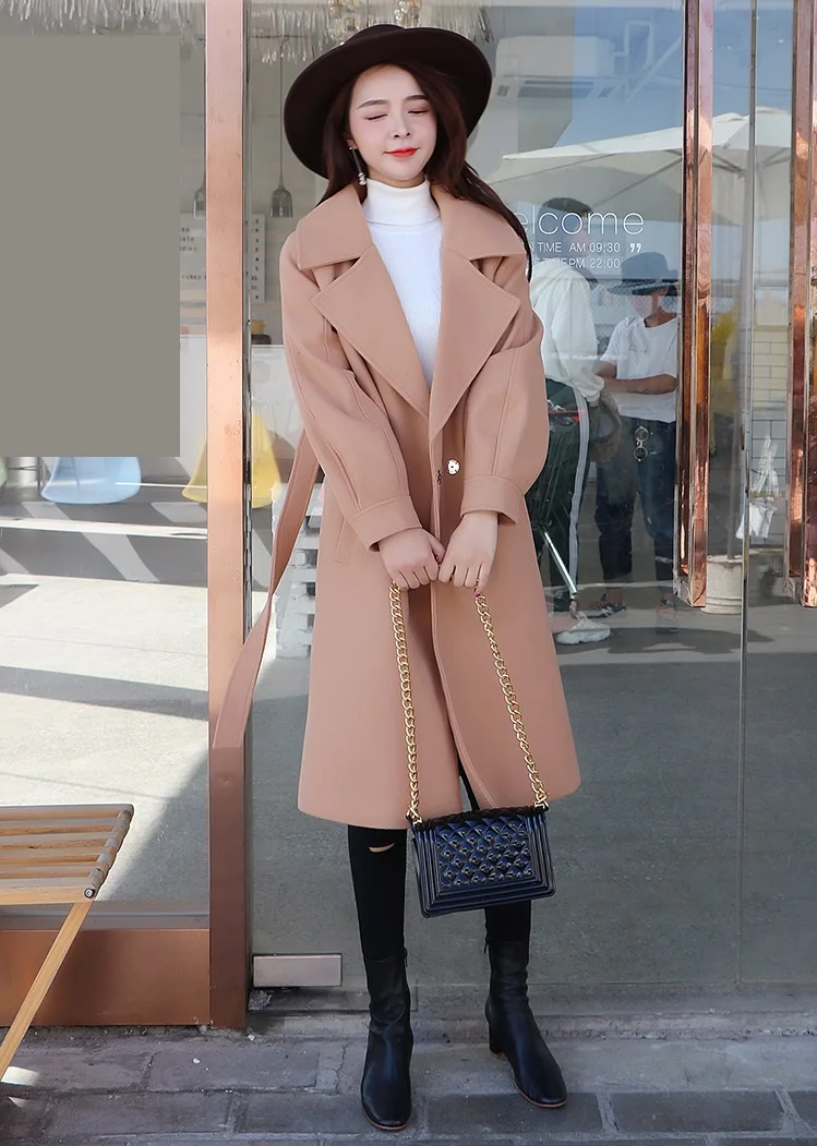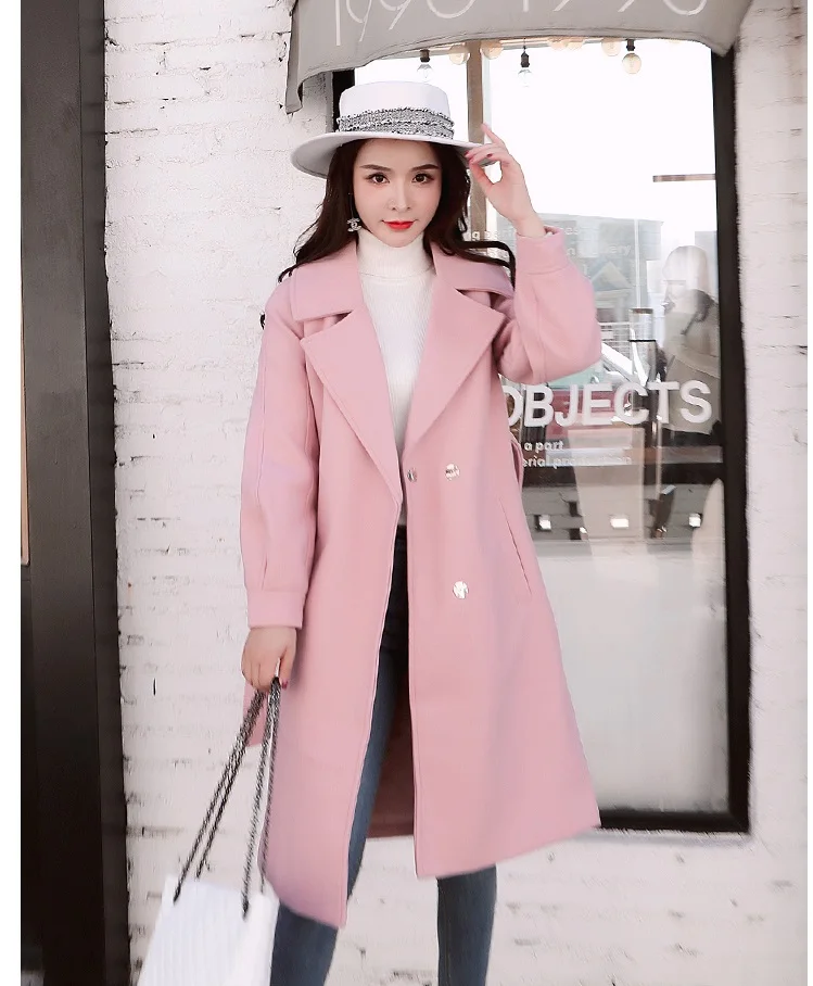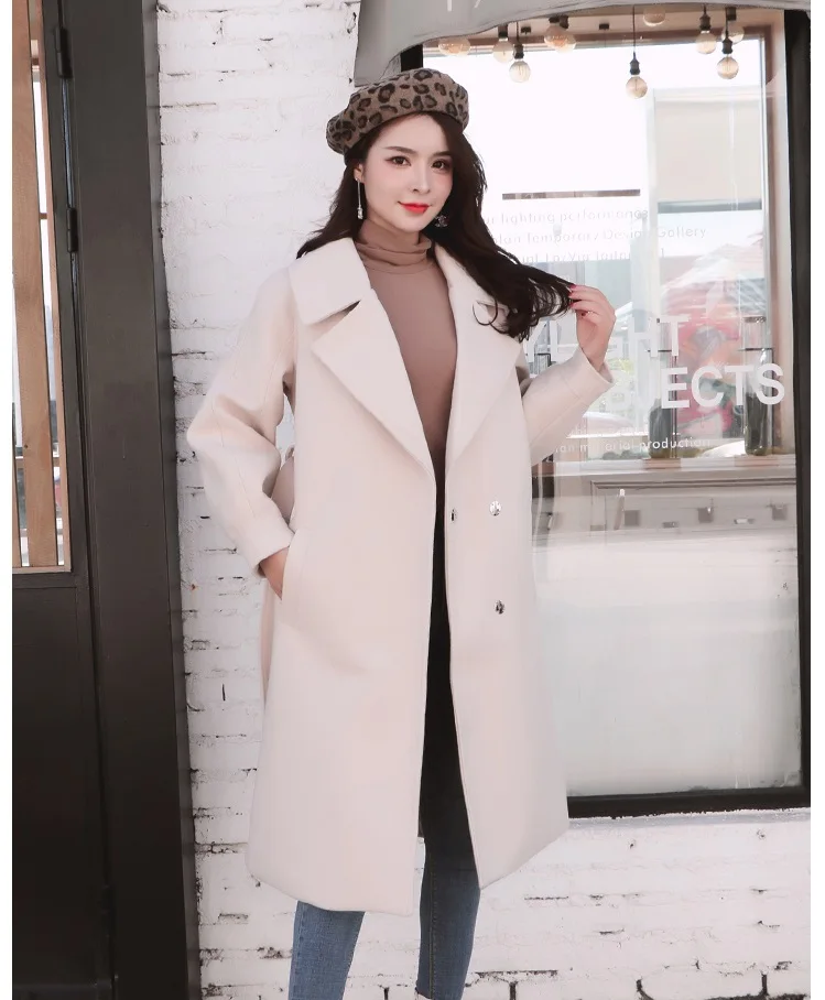 UHYTGF женские зимние пальто однобортный сладкий элегантный женский лацкан шерстяного манто тонкий плюс размер верхняя одежда plaszcze damskie 369