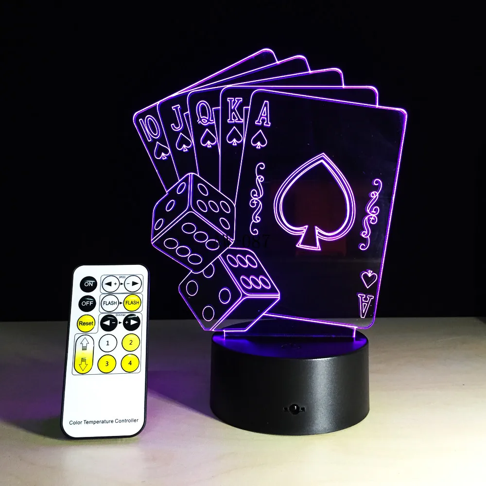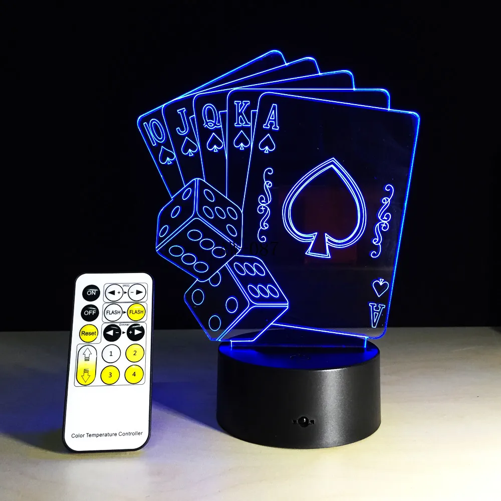 Креативный 3D светодиодный USB светильник волшебник украшение Техасский HOLD EM Dice Poker Spades игральная карта 7 цветов меняющийся RC Ночной светильник на Рождество