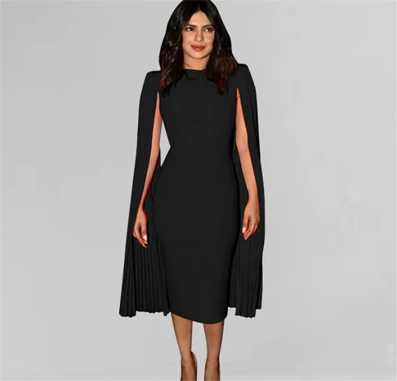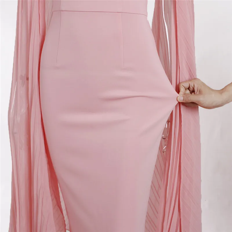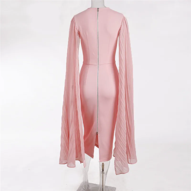 Осенне-зимний элегантный лоскутный Длинный плиссированный разделенный плащ с длинным рукавом облегающее розовое платье миди с круглым вырезом Вечерние платья