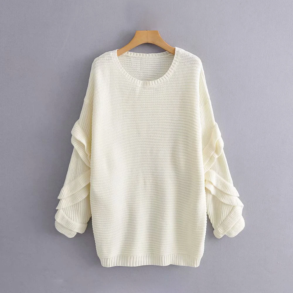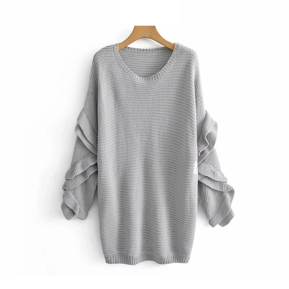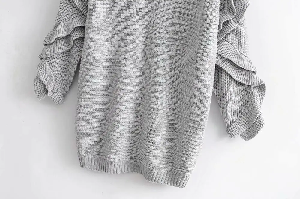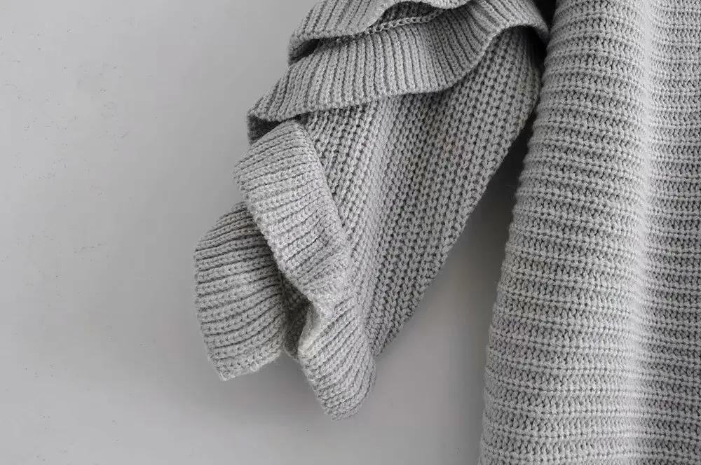Женский Трикотажный Свитер оверсайз с оборками, Свободный Длинный свитер, повседневный трикотажный свитер, Женский Топ, 2019