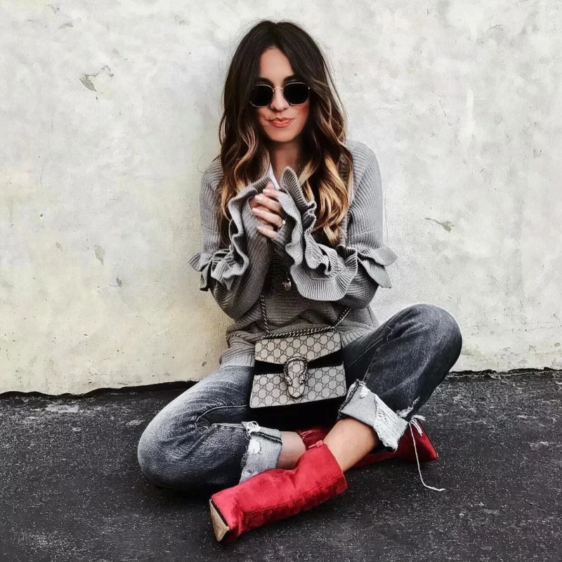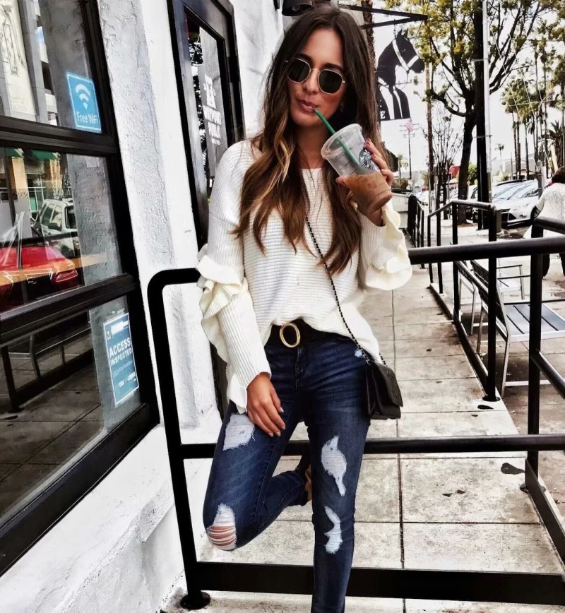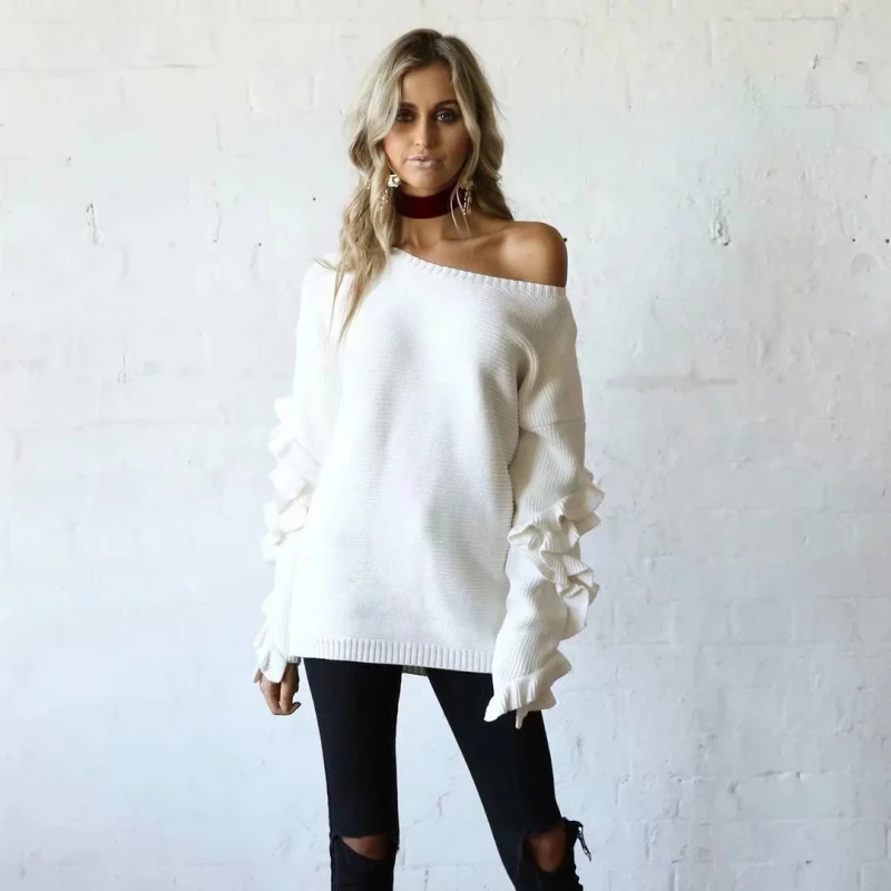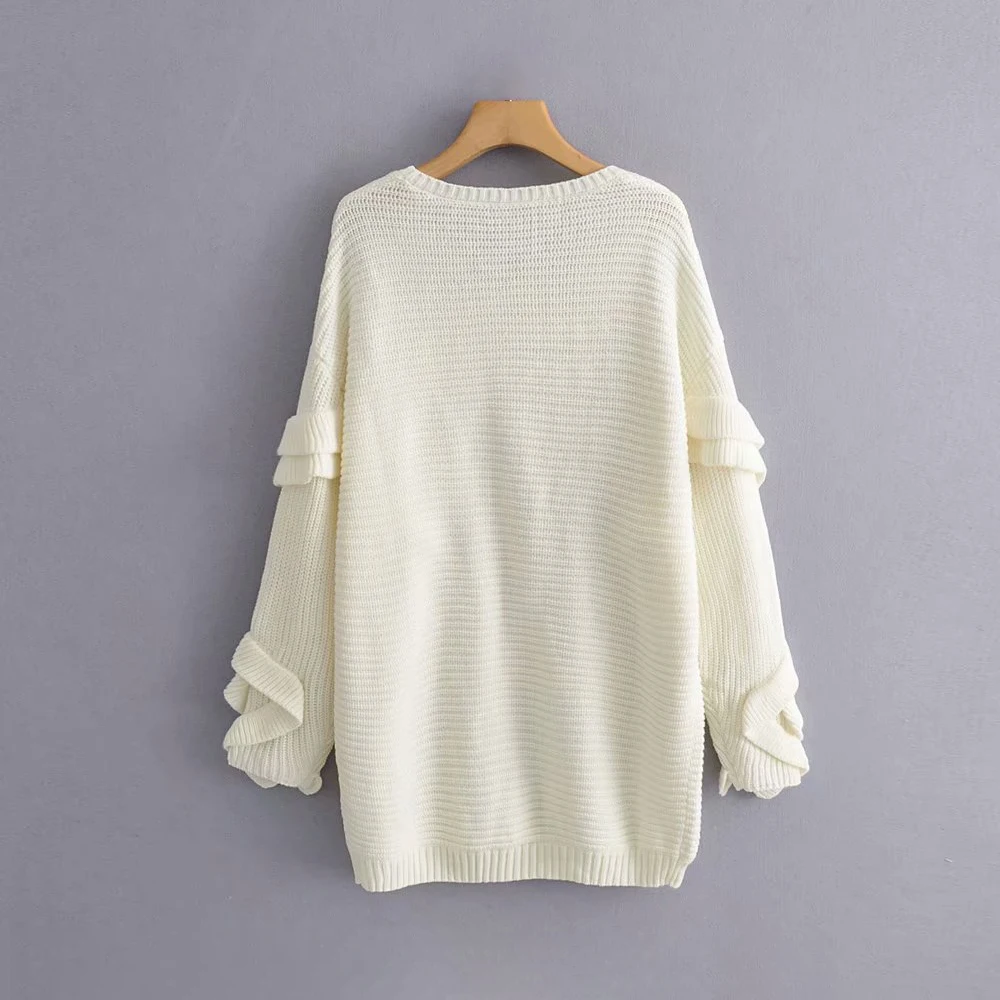 Женский Трикотажный Свитер оверсайз с оборками, Свободный Длинный свитер, повседневный трикотажный свитер, Женский Топ, 2019