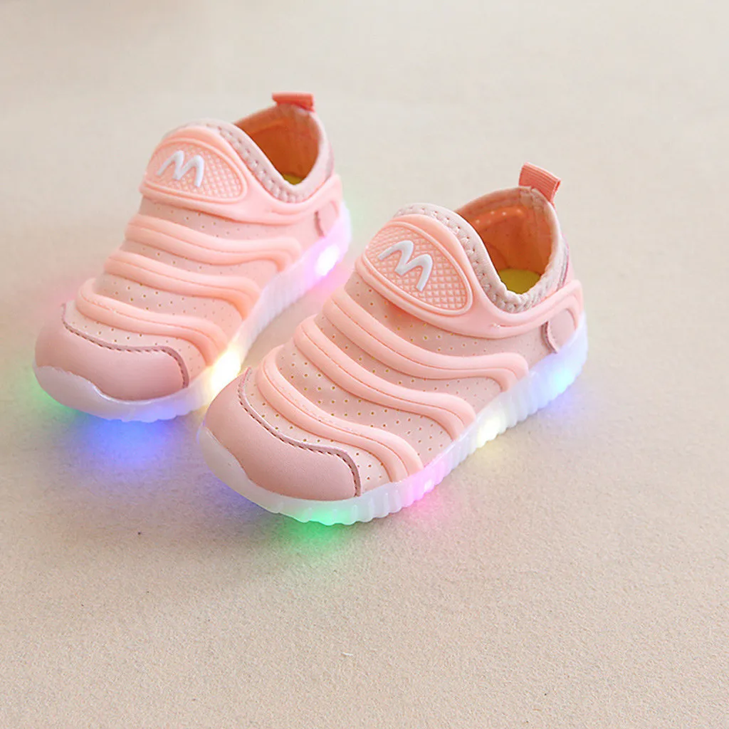 Дышащая светящаяся спортивная обувь для маленьких девочек и мальчиков; Светодиодный свет; кроссовки