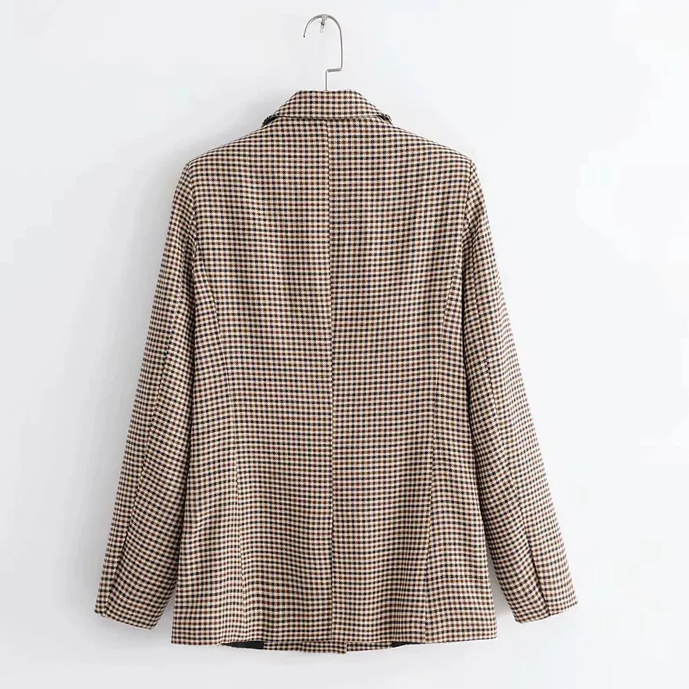 Модное женское пальто, Ретро стиль, на пуговицах, в клетку, с подплечниками, костюм, пальто, блузка