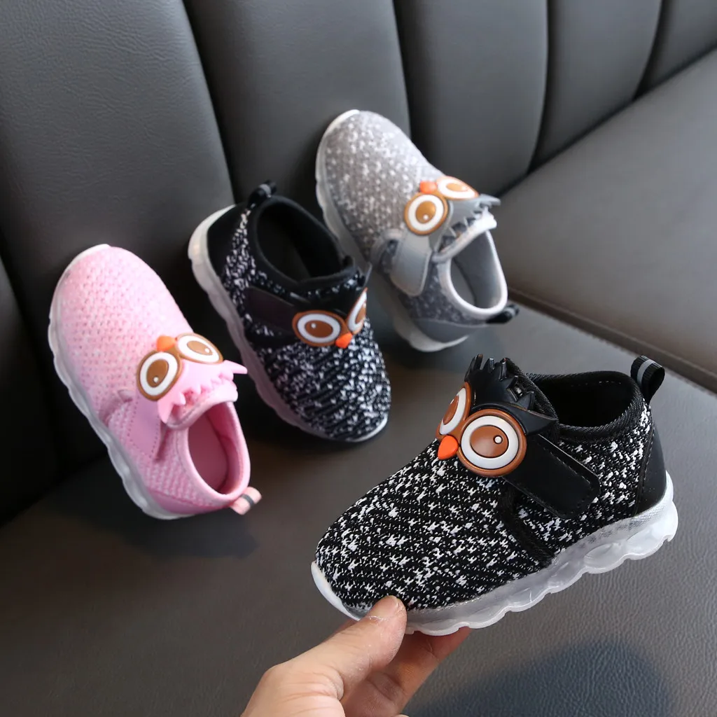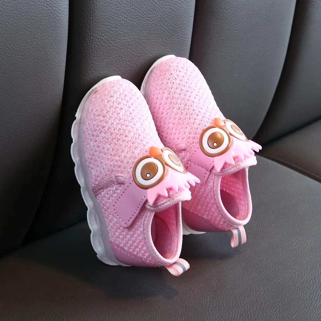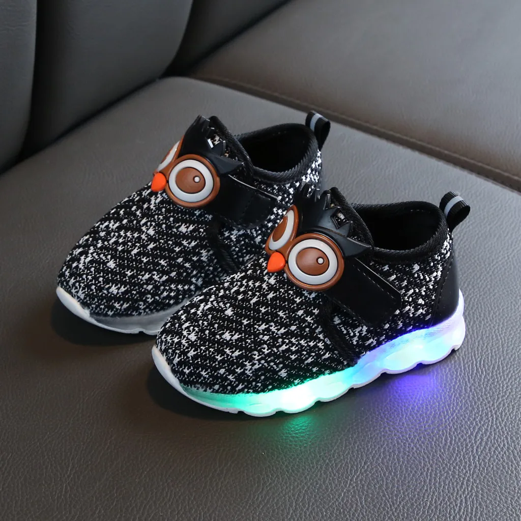 Детские кроссовки для маленьких мальчиков и девочек с милым рисунком; Спортивная обувь с подсветкой