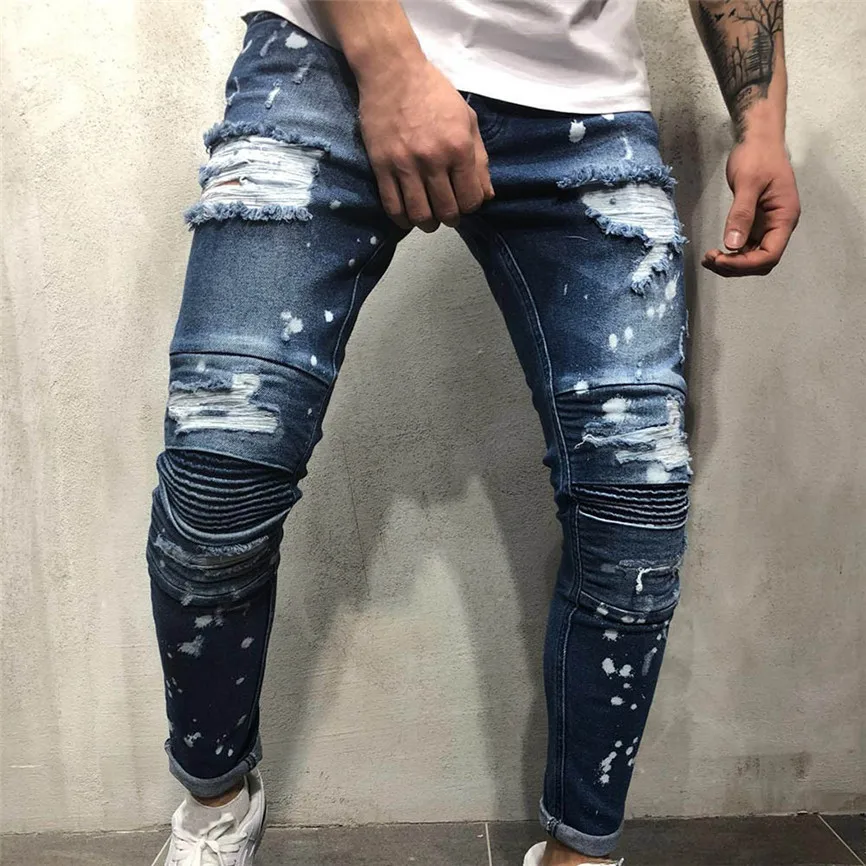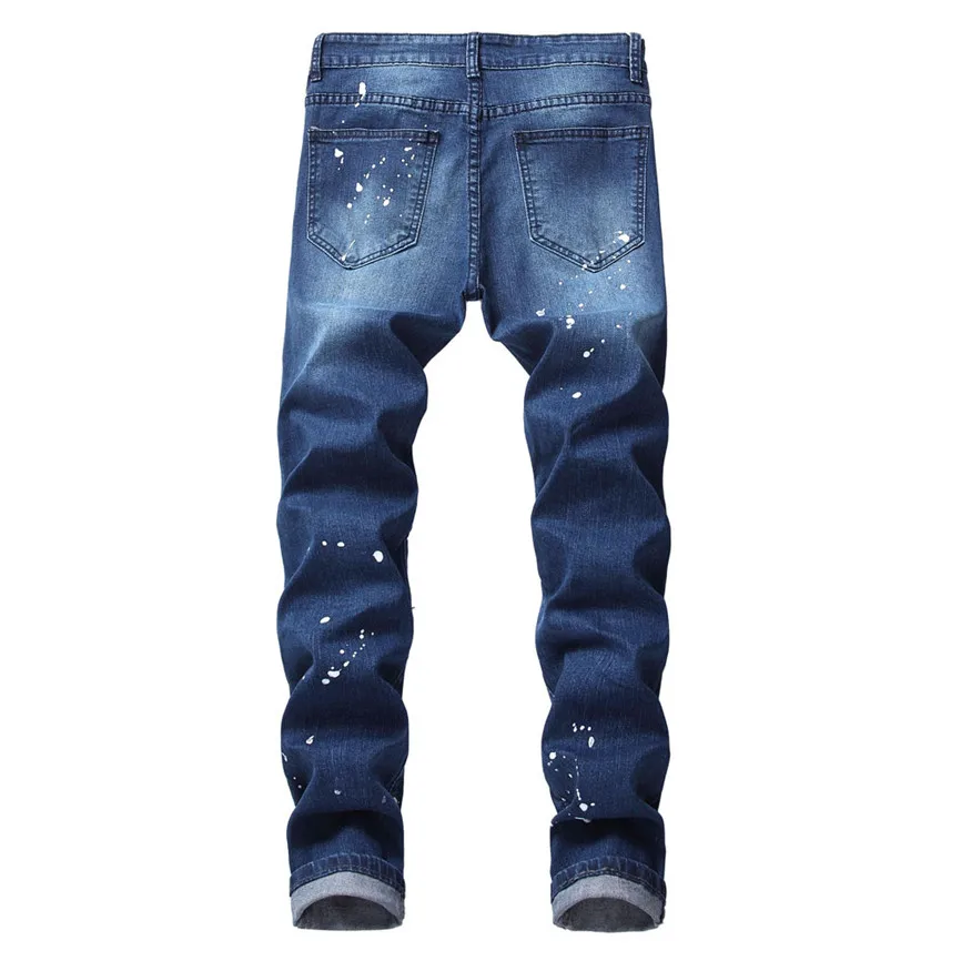 Мужские осенние джинсовые хлопковые Прямые рваные брюки с потертостями джинсовые брюки