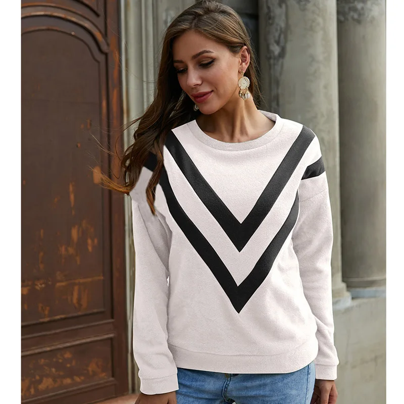 Женский пуловер с круглым вырезом, осенний свитер, повседневные толстовки, флисовые кофейно-зеленые топы, Повседневная футболка, белый джемпер, уличная одежда, LQ-2482