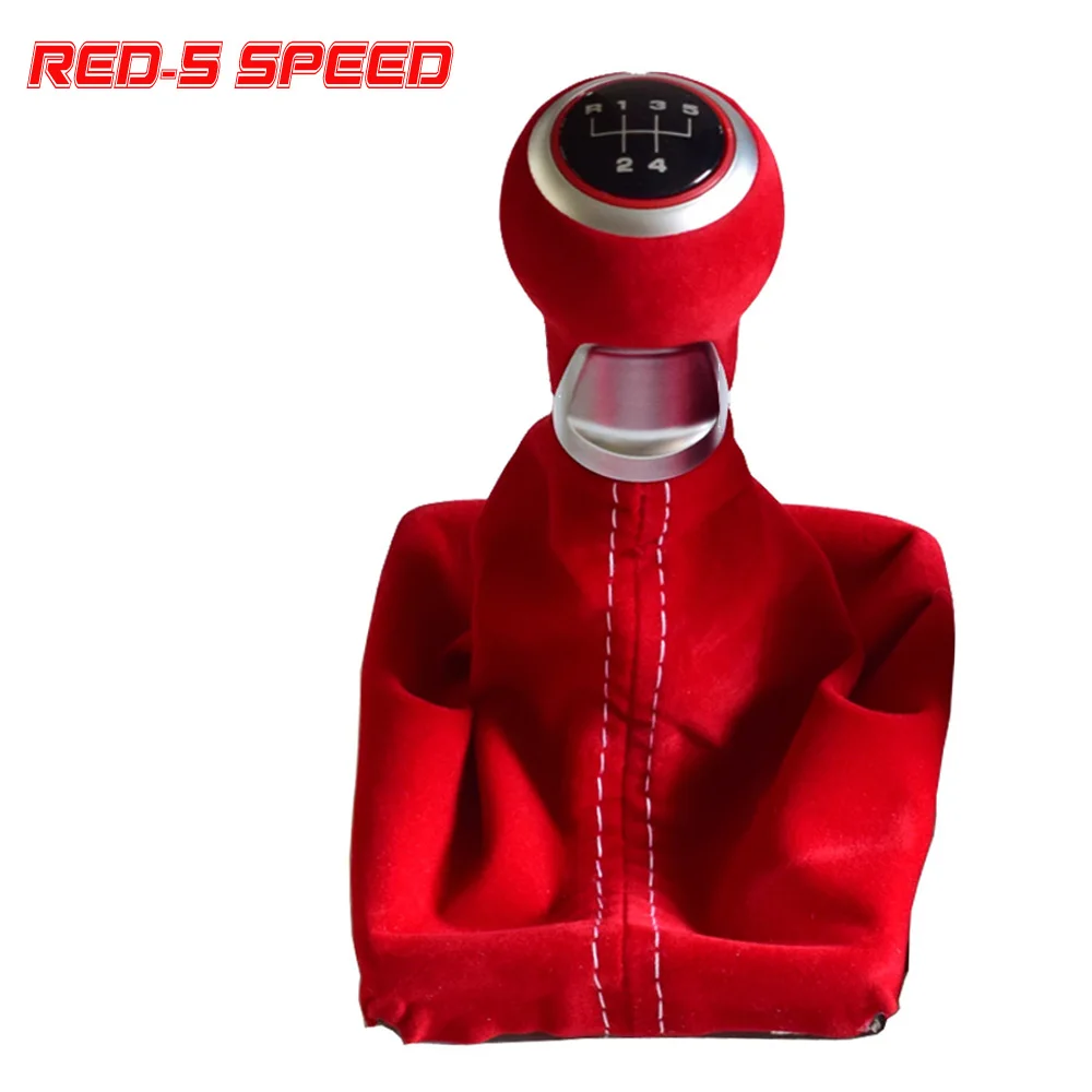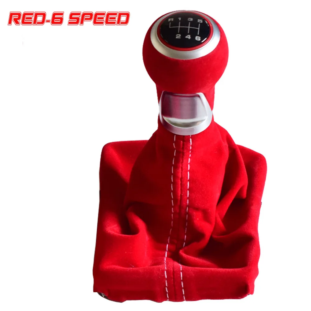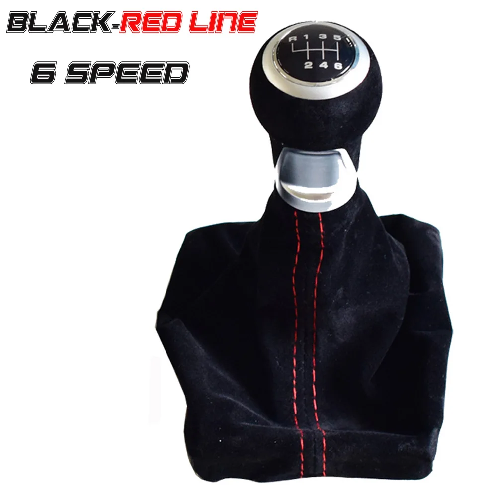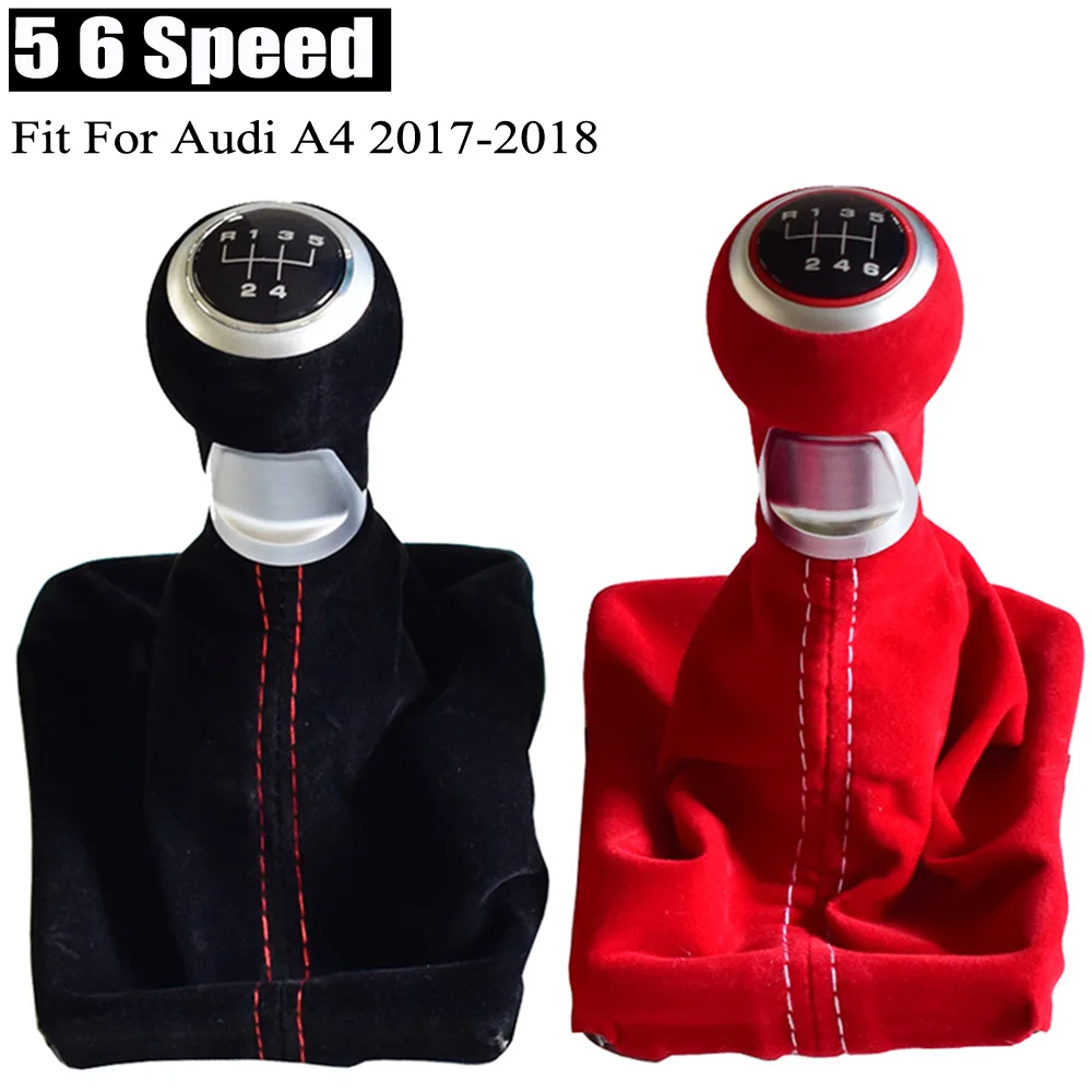 Черный красный замшевый Кожаный Автомобильный 5/6 скоростной ручной рычаг переключения передач Ручка Рычаг Подходит для Audi A4 2017-2018 с гетром чехол для ботинок