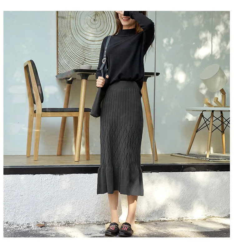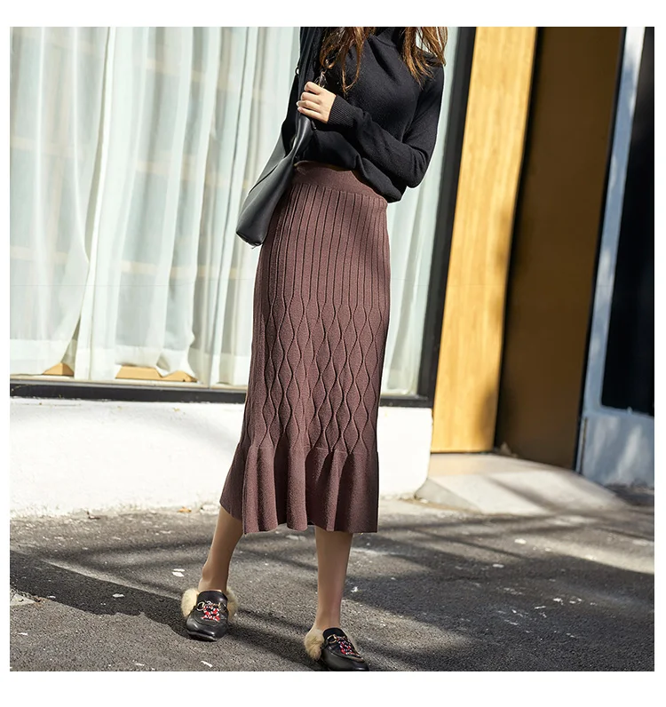 Полосатый бедра пакет оборками вязаная женская юбка осень высокая талия женский свитер миди юбка 2020 зима высокое качество DC405 <