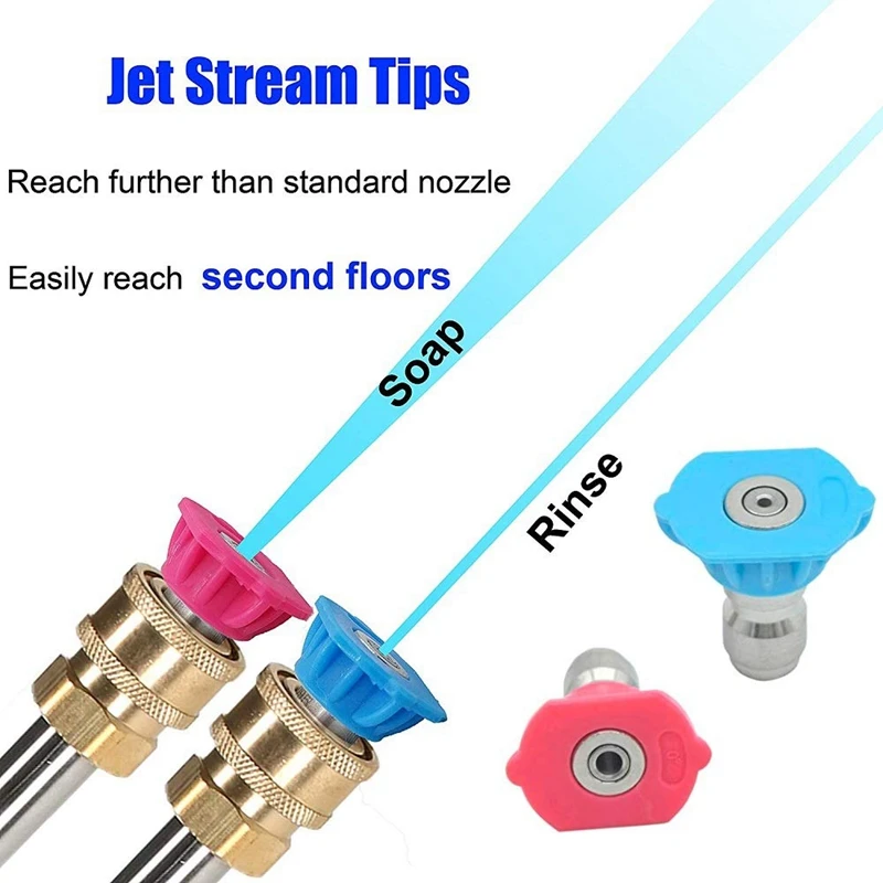 Универсальные комплекты аксессуаров для мойки под давлением: 2-слойные наконечники распылителя для мойки под быстрым давлением 2-го класса/4-дюймовые. 2-пакет быстрого подключения фитинга к гнезду, 1/4 дюйма. Удовлетворить ваши потребности в различных ситуациях, это делает мытье вашего автомобиля, тротуар, сад и многое другое.