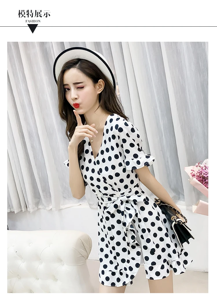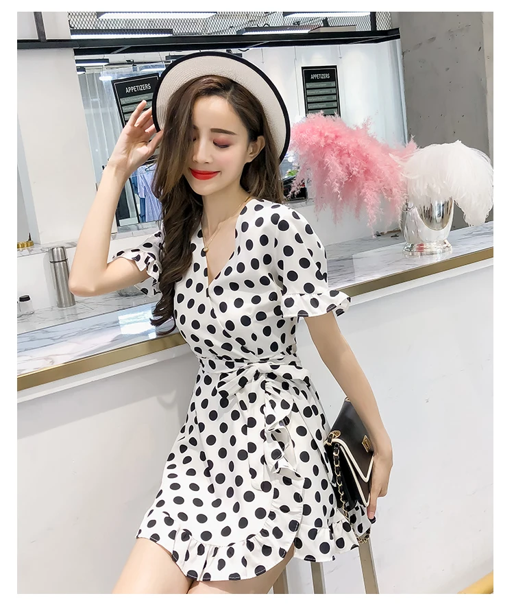 2020 NEW Ruffles Dot Print Summer Dress Vintage Irregular Bow Wrap Short Dress Women Chic Chiffon White Red Dress DF293<
