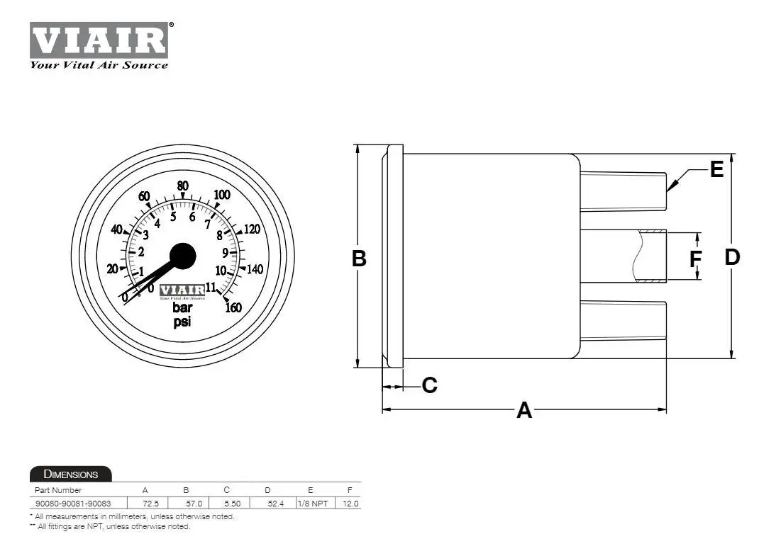 Название продукта: 2 дюйма 52 мм двойная игла 0-220PSI Воздушный манометр Название бренда: Viair (США) Состояние на 100% абсолютно новый Цвет: черный Напряжение: 12 В Вес нетто: 230 г L:W:H = 57 мм: 52 мм: 72 мм Количество: 1 шт.