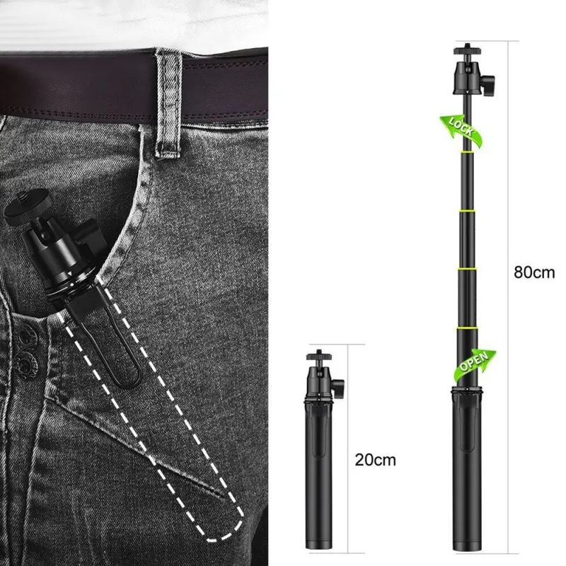 1. Мини-селфи-палка портативна для переноски, так как ее можно сложить до 20 см, что подходит для мужских карманов и женской сумочки