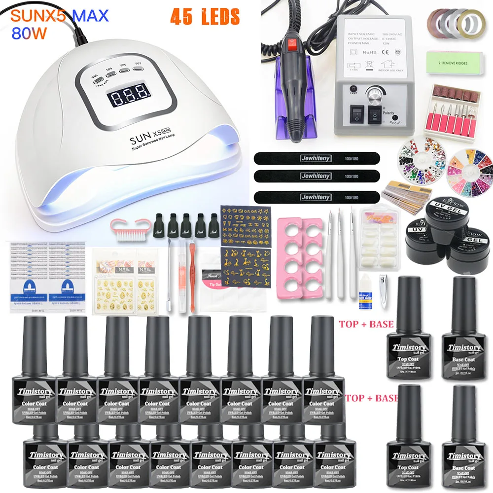 Набор для ногтей сушилка 54 Вт/48 Вт Светодиодный УФ лампа и Гель лак верхнее