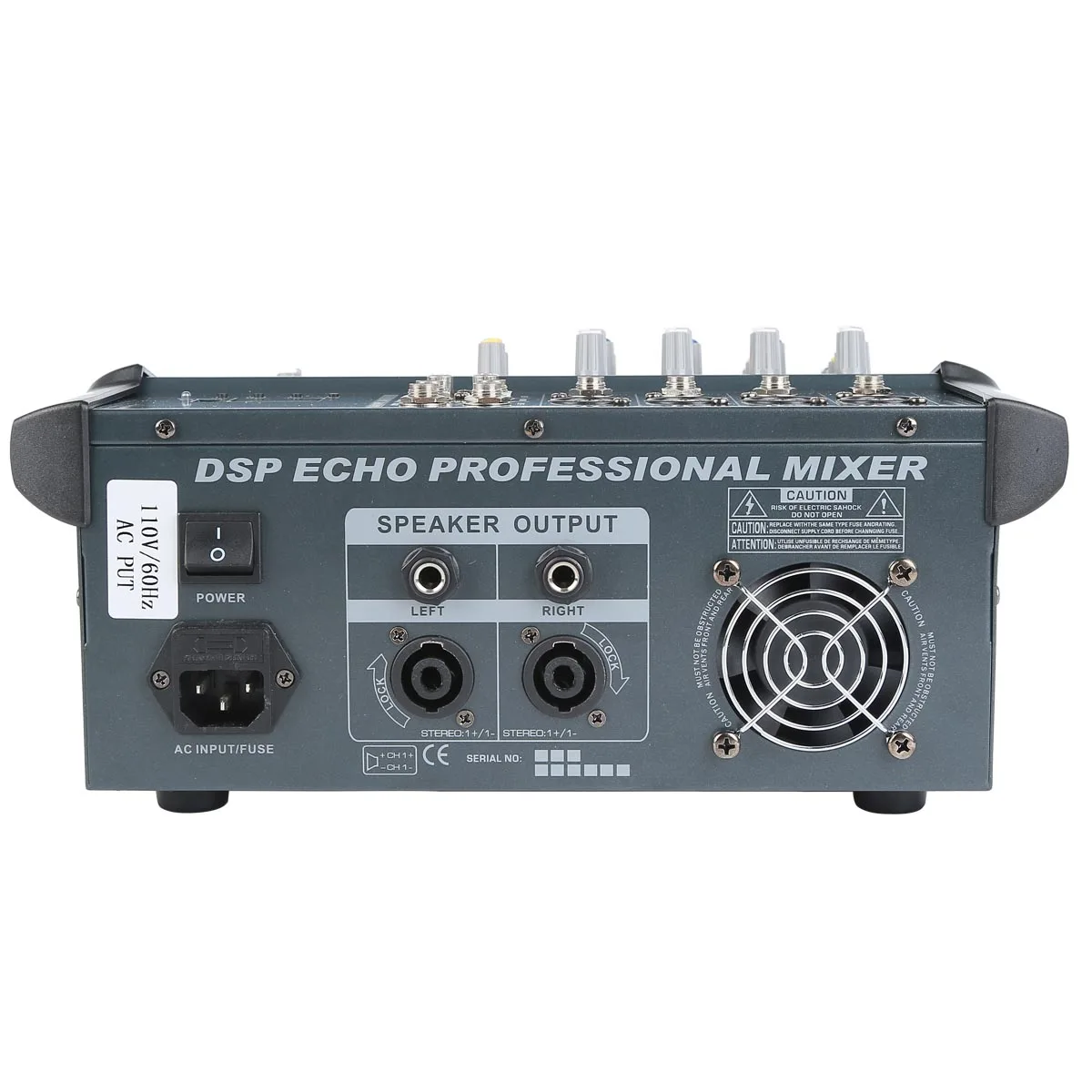 Состояние: 100% новый CE Сертификация Вес нетто (прибл.): 5,7 кг Вольт: 110 В/60 Гц Размеры (Ш x В x Г): 11,8 "x 12,6" x 4,3" 180 Ватт RMS, 340 Ватт Макс Профессиональный миксер с usb-слотом 2 Динамик выходным гнездом 4 моно входных канала с позолоченными XLRs и сбалансированным линейный вход s Ультра-низкий уровень шума дискретные микрофонные предусилители с фантомной мощностью + 48 В Сбалансированные входы для максимальной целостности сигнала Ультра-музыкальный 2-полосный эквалайзер по всем каналам Пиковые светодиоды все моно каналы 1 Aux отправка на канал для внешних эффектов и мониторинга Имитирующий эффект (16DSP) Главный микс выход и выход rec Высокоточные 5 сегментные барграфы Отдельный мастер микс выходы С реверберации