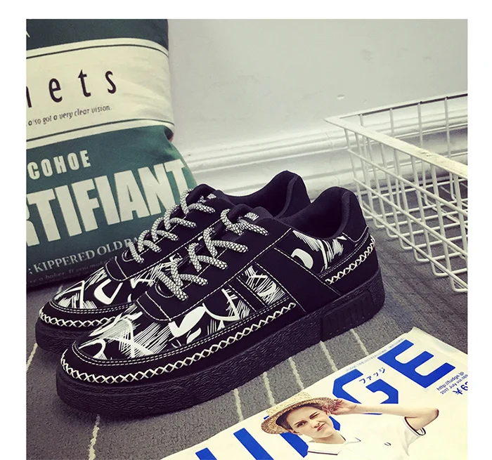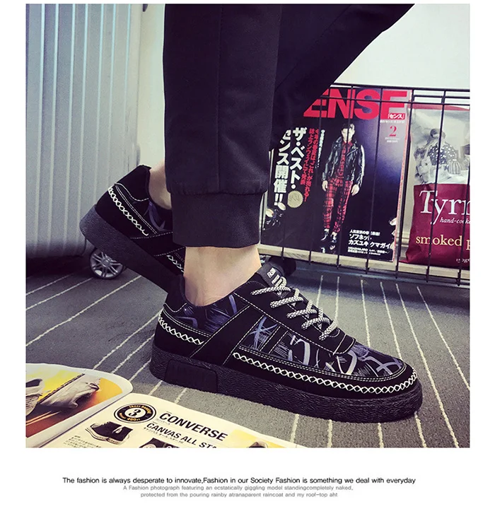 Fashion Men's Casual Canvas Shoes Print Mixed Color Sneakers Trainers Leisure Shoes Men Flats Slip Shoes Korean Version Footwear