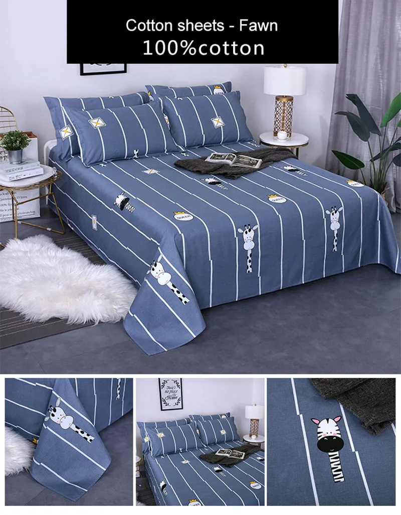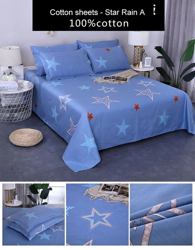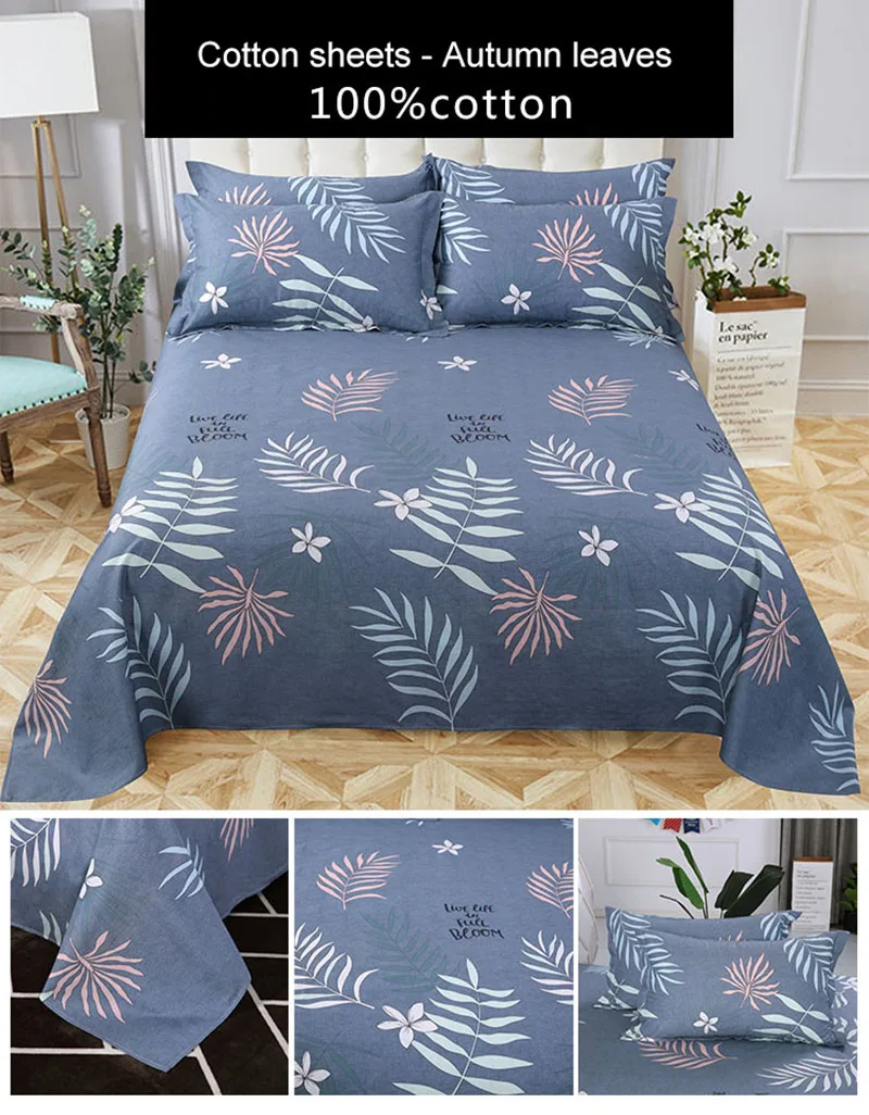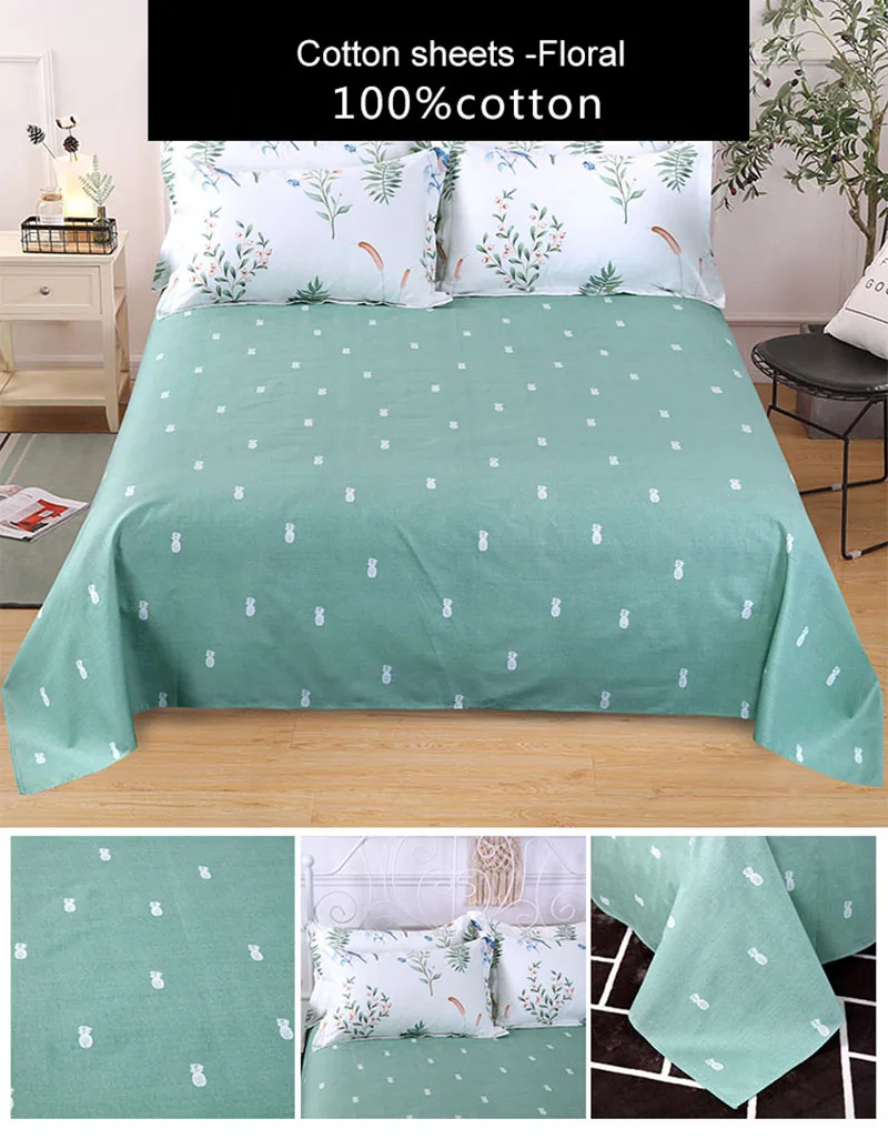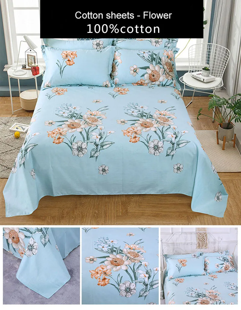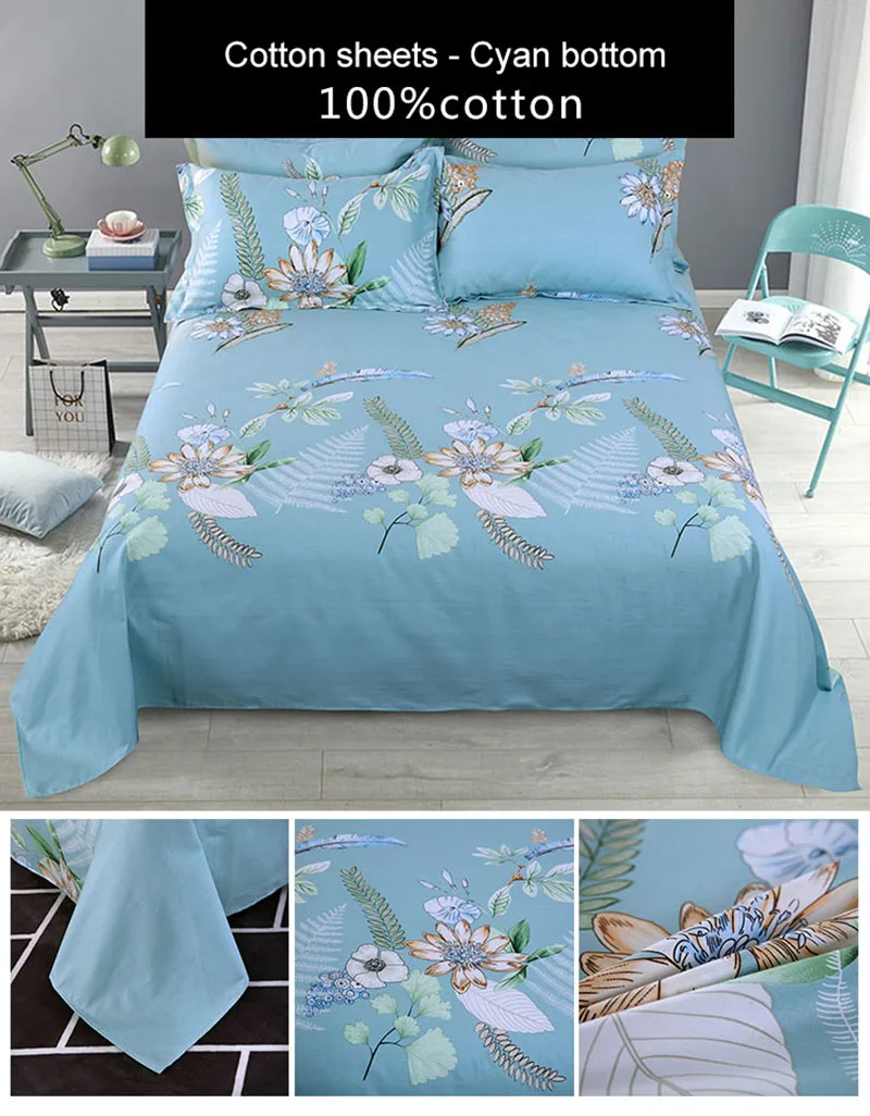 Girl Pink Cotton Large Elastic Sheets Small Fresh Blue Flowers Printed Sheets 1pc Beautiful Soft Simple Non-Slip Sheets