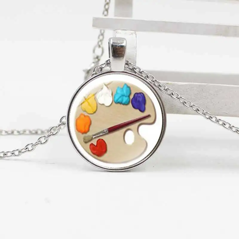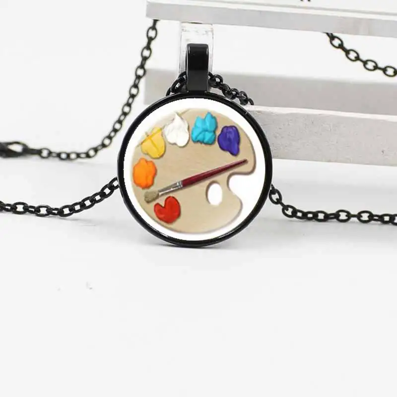 Модная Гламурная палитра фото круглая стеклянная подвеска ожерелье ювелирные изделия