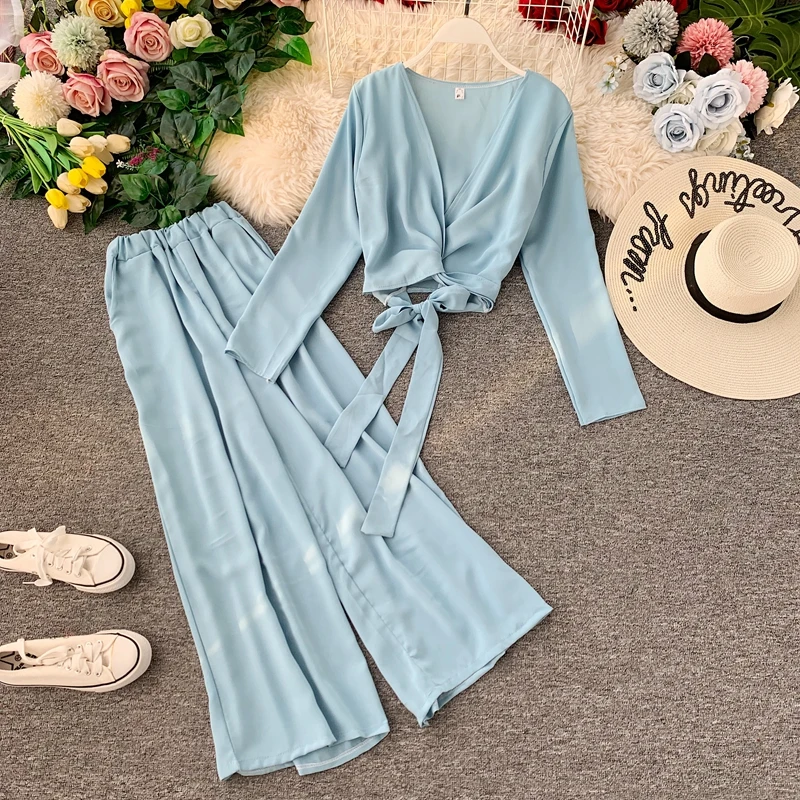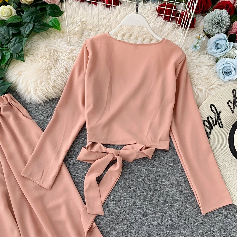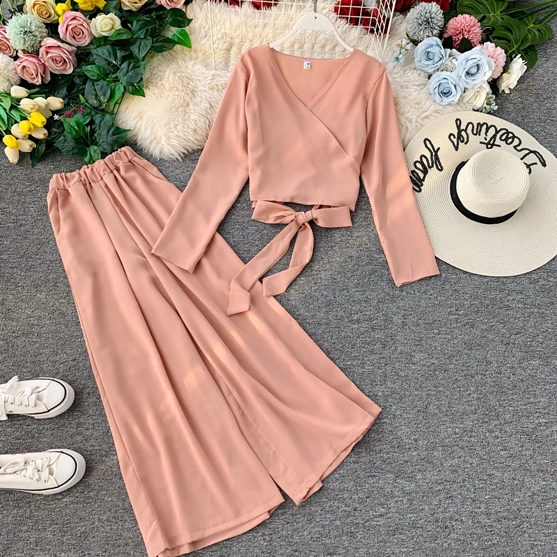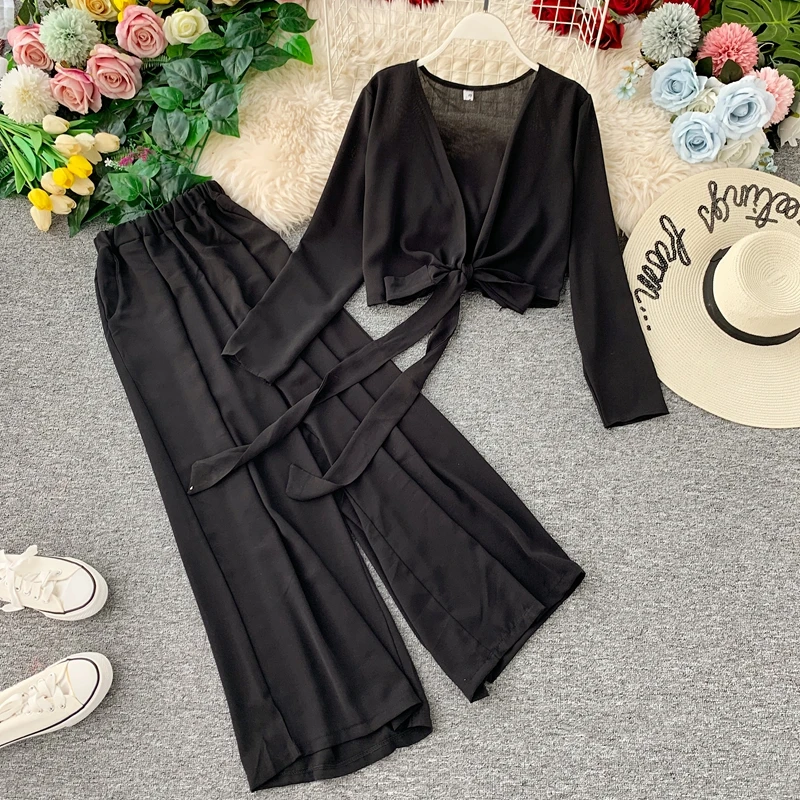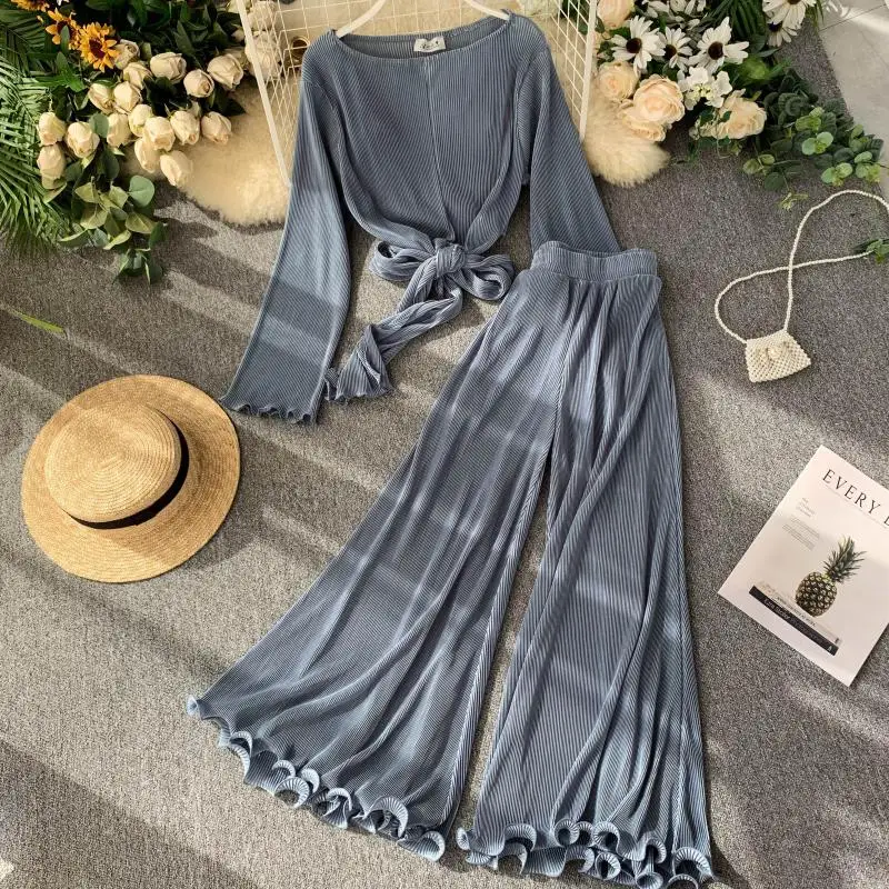 Милый женский костюм 2019 новый модный Удобный Вязаный милый комплект из двух