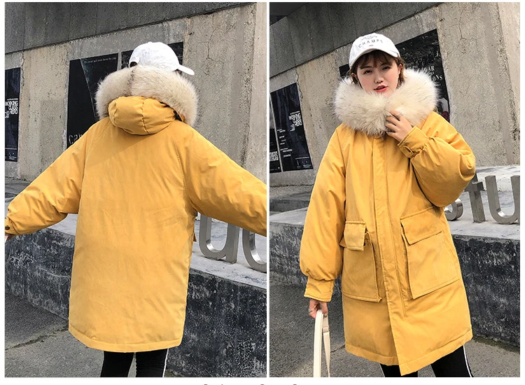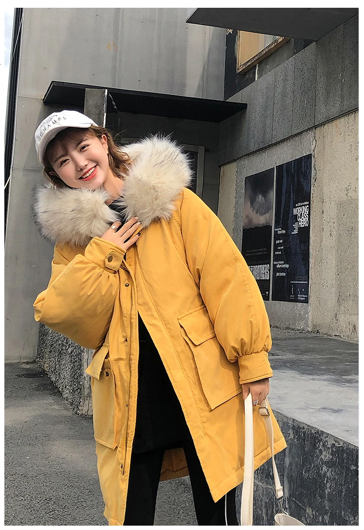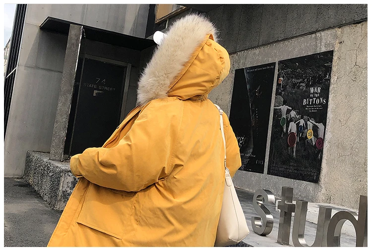 Ins/зимняя куртка большого размера из хлопка для женщин, 2019 утепленное студенческое Свободное пальто, Корейская Длинная желтая парка, женская одежда жилет Femme