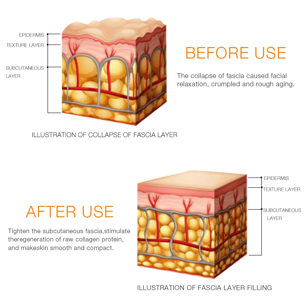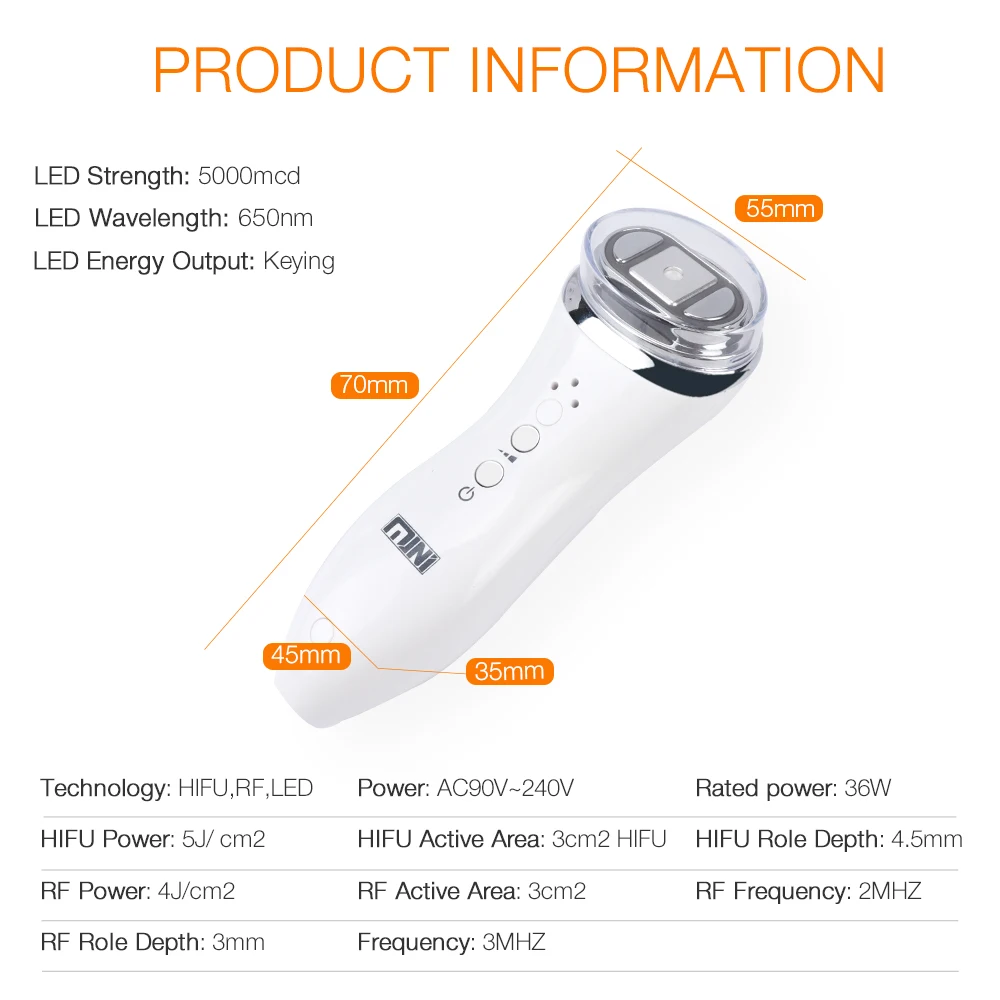 Обладает неинвазивным и фокусируемым проникающим преимуществом. По технологии HIFU, он может использовать неинвазивный способ (без хирургии или инъекции), чтобы действовать на спроектированную подкожную область. Подкожная клетчатка будет производить транситентное нагревание при высокой частотной вибрации, вплоть до энергии обработки, которая делает клетки кожи неровными.