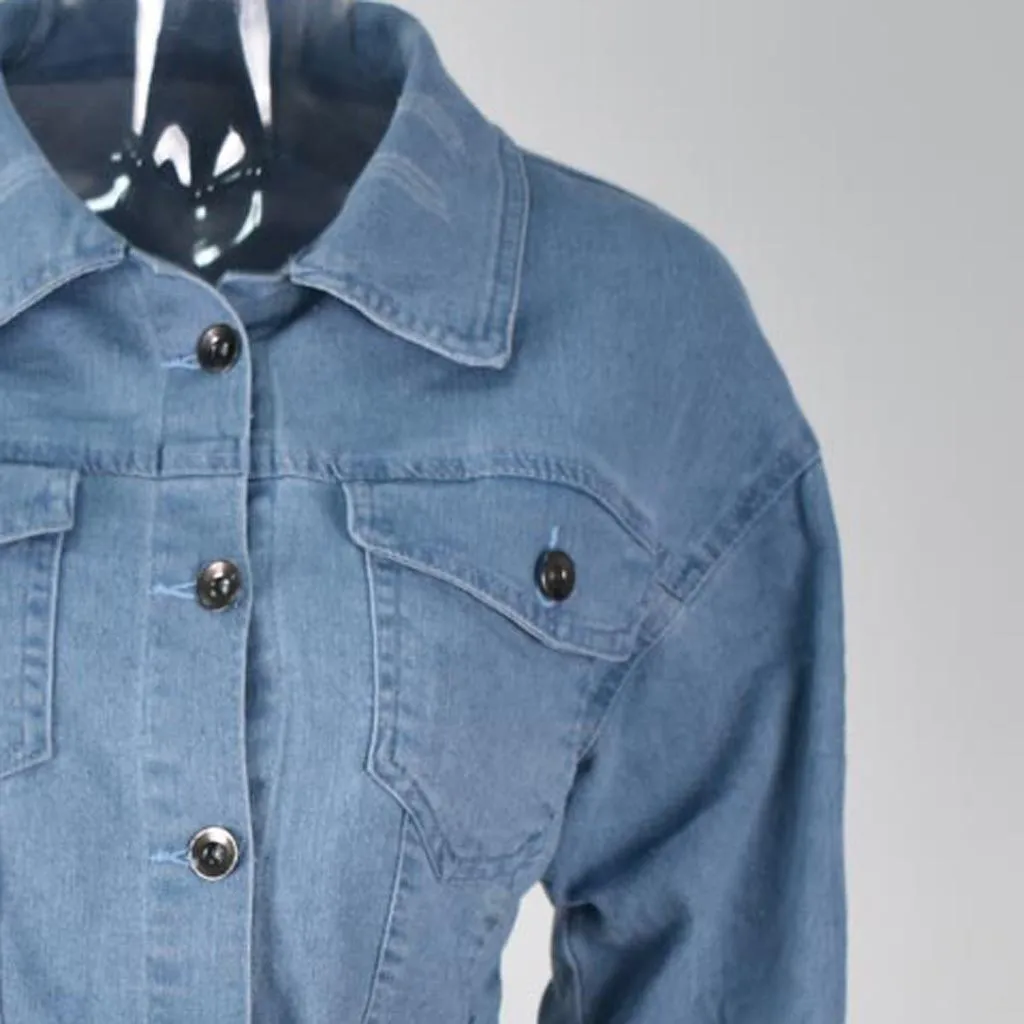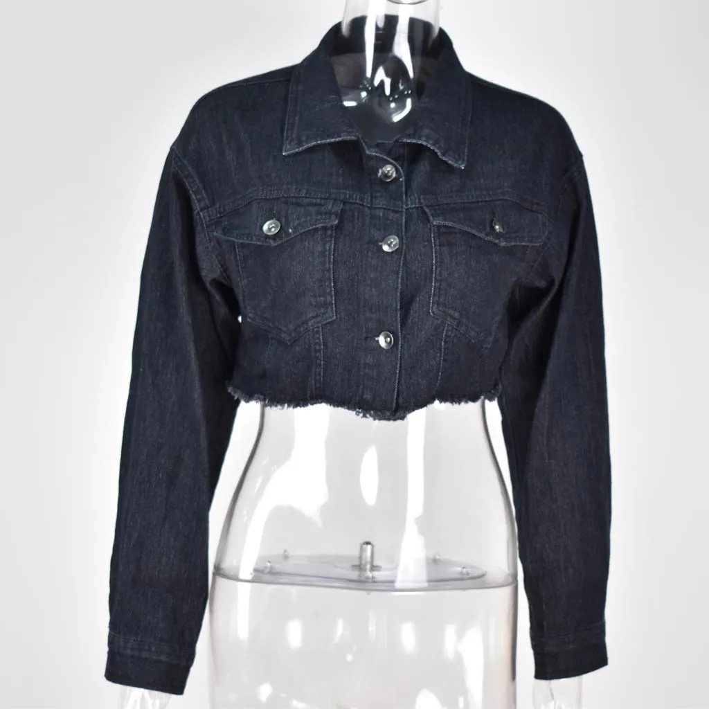 Женская джинсовая куртка с длинным рукавом, Короткая Повседневная джинсовая куртка, верхняя одежда