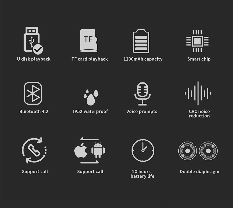 1 поддержка A2DP, AVRCP, файл конфигурации без рук. 2 версия Bluetooth: V5.0 + EDR класс 2 3 Рабочий диапазон: до 10 метров 4 размера: 185 мм * 70 мм * 70 мм 5 Вес нетто: 395 г 6 динамиков: 40 мм 7 Выходная колонка: 2X5W 8 Частотная характеристика: 100 Гц-20 кГц 9 отношение сигнал-шум: ≥ 95 дБ 10 искажений: ≤ 0.007% 11 напряжение/Емкость аккумулятора: 1800 мАч 12 напряжение зарядки аккумулятора: ± 5 В. 13 Время зарядки аккумулятора: 4 часа 14 значение времени воспроизведения: 8 часов 15. Время работы в режиме ожидания: 8 дней Примечание: 1 цвет изделия может немного отличаться от изображения из-за различий в освещении и экране. 2 позвольте 0,5-2 см, так как измерения выполнены вручную, допускаются отклонения в размере в пределах.Смотрите так же другие товары: