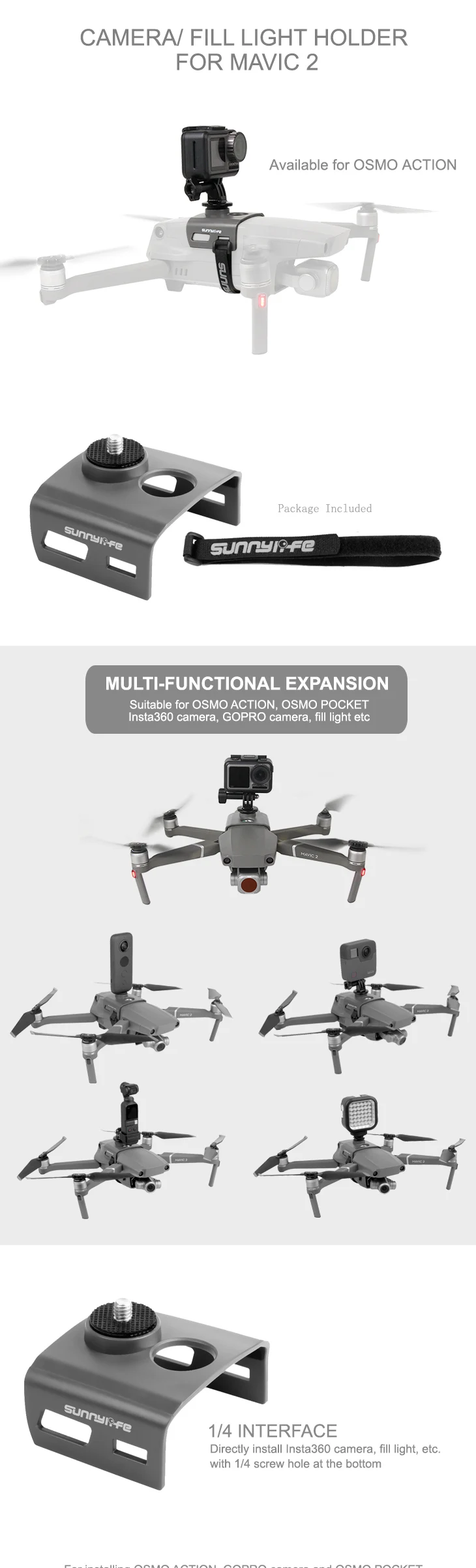 1/4 "винтовой соединитель Адаптер для DJI Mavic 2 Pro Zoom. Легко подключить экшн-камеры GOPRO или панорамные камеры 360 градусов к дрону. Свободно вращается без каких-либо препятствий, чтобы поймать лучшие снимки и сцены. Изготовлен из высокопрочного АБС-пластика, прочный, светильник, не влияет на лету дрона. В комплект входит: 1 комплект адаптеров (Дрон и другие не входят в комплект).