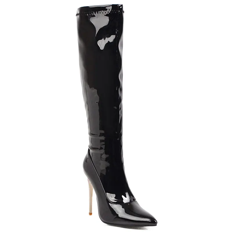 Lasyarrow/зимние сапоги до колена; Женские высокие сапоги из лакированной кожи на тонком каблуке; Обувь на молнии на очень высоком каблуке; Женская Осенняя обувь