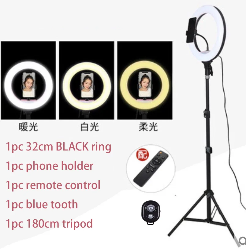 Фотостудия 32 см селфи кольцо свет 1 шт. пульт дистанционного управления синий зуб Свет Стенд держатель телефона фотография для смартфона студия VK Черный цвет