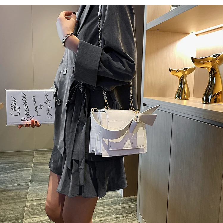 Сумка-мессенджер женская с узором под кожу крокодила модный саквояж на плечо