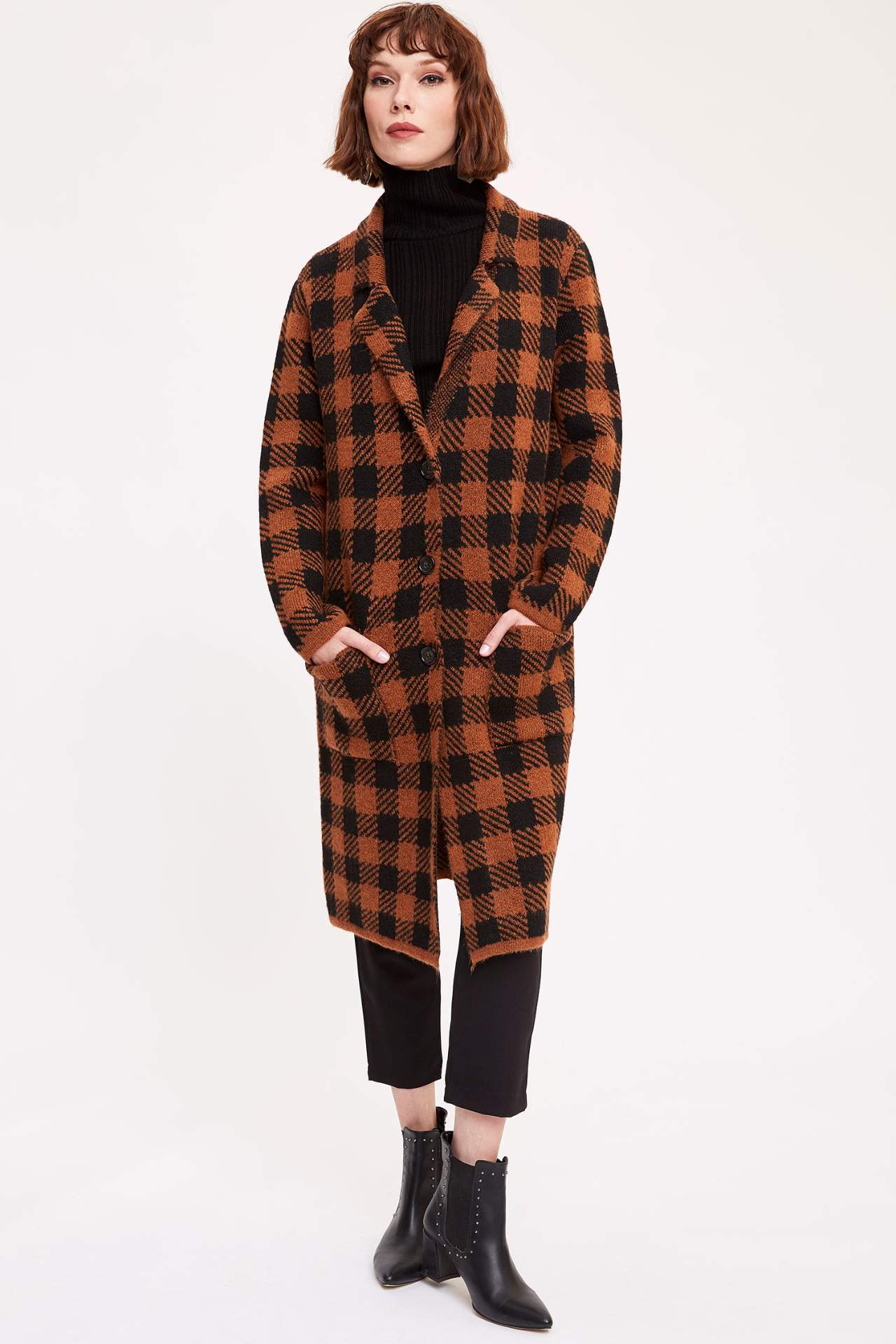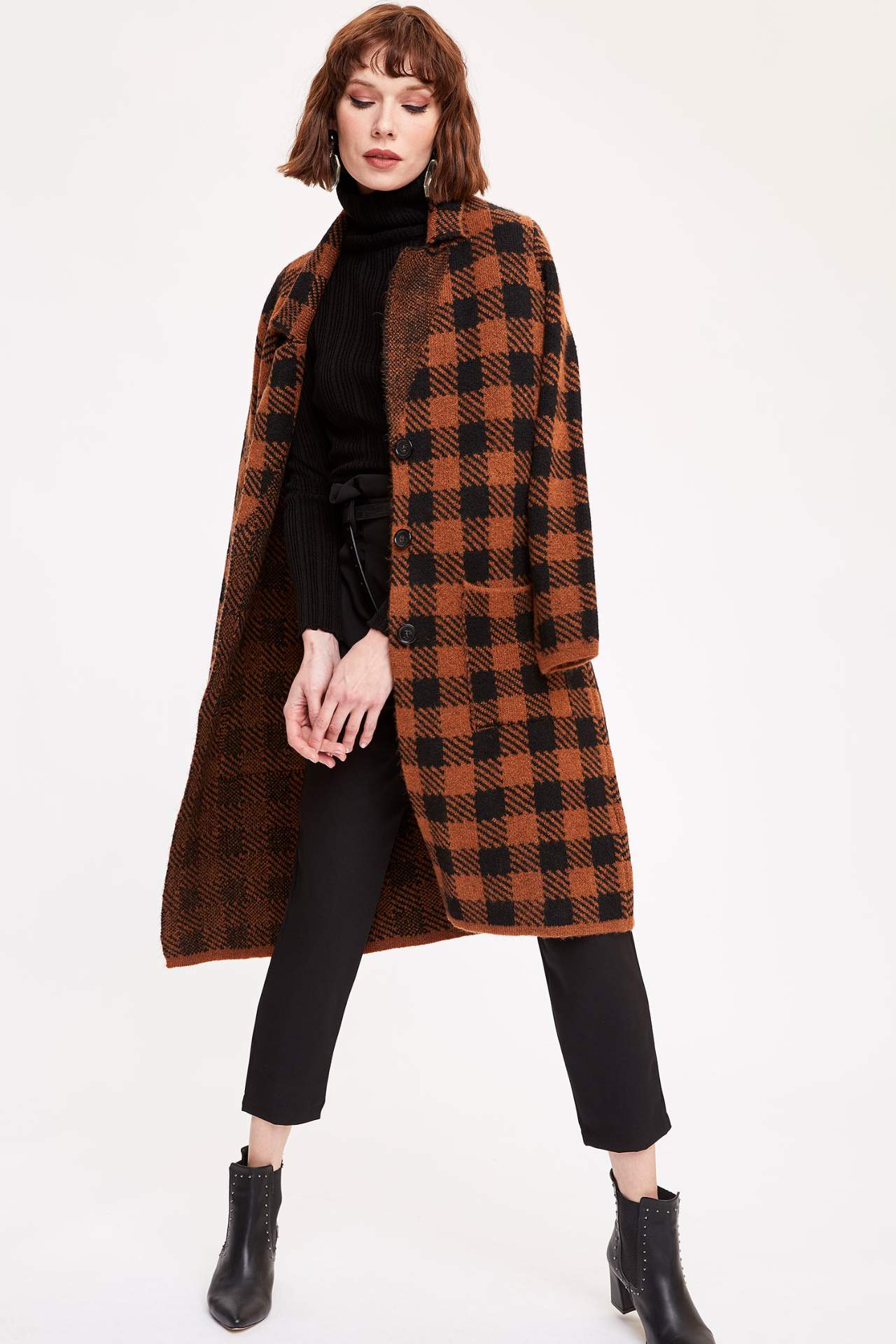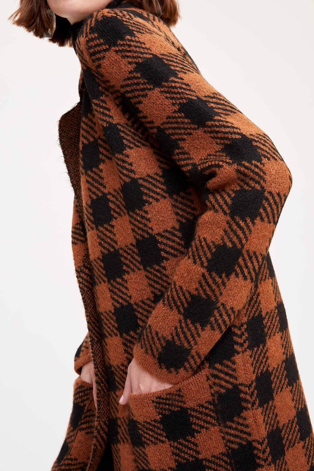 Плед вязать футболка Для женщин 2019 Весна Новый клетчатый с высоким воротом и