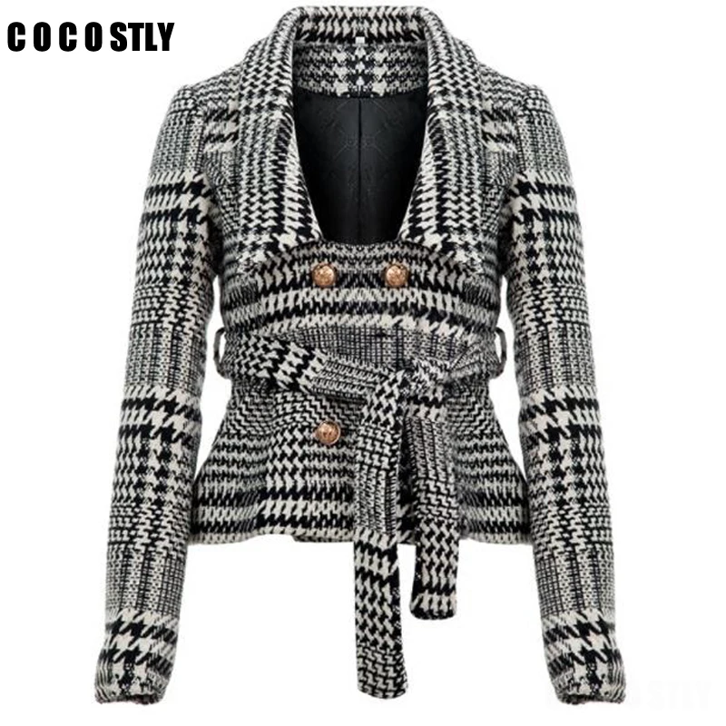 Женский твидовый блейзер в клетку с зубчатым воротником, двубортный блейзер с карманами и кисточками на подоле, Женская свободная повседневная верхняя одежда, шикарные топы