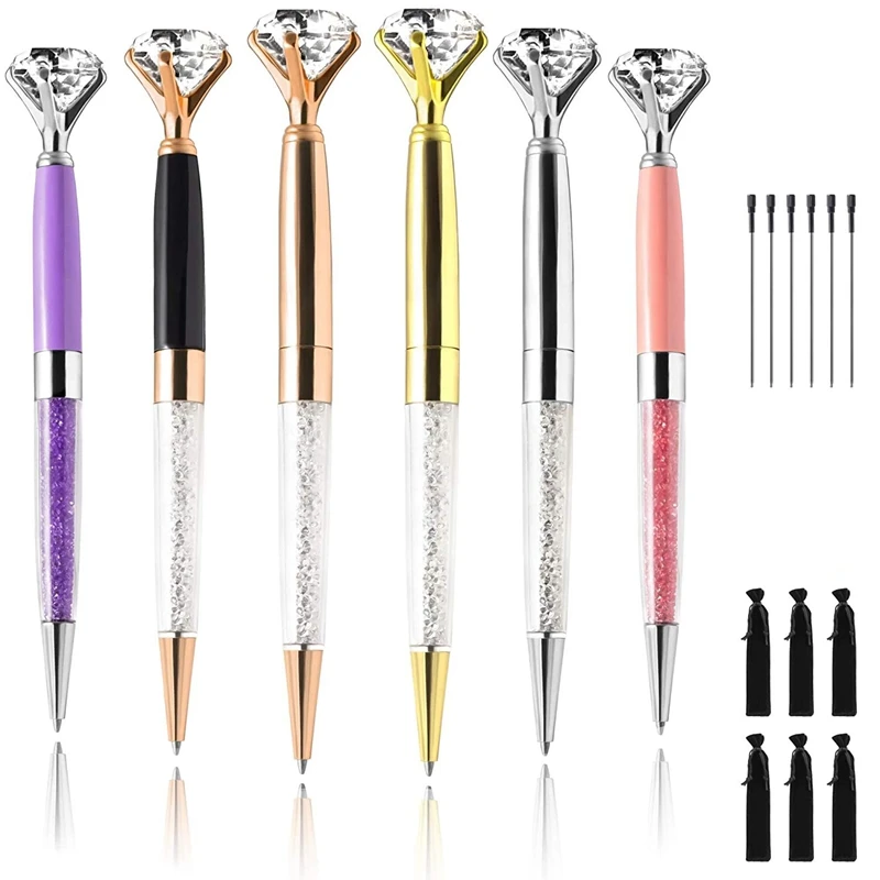 6x причудливые Кристальные алмазные шариковые ручки 6x черные чернила заправки 6x милый Подарочный пакет большая блестящая ручка для письма розовое золото серебро набор оптом fo