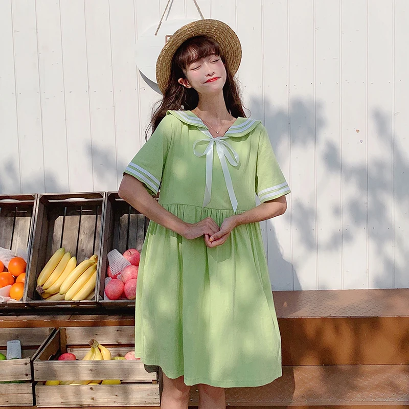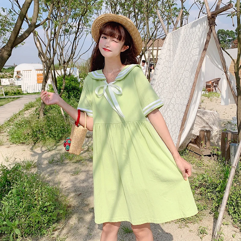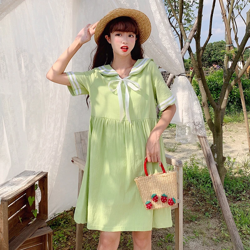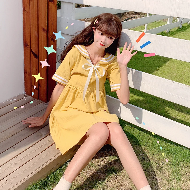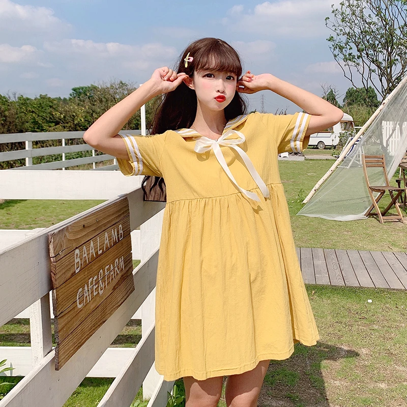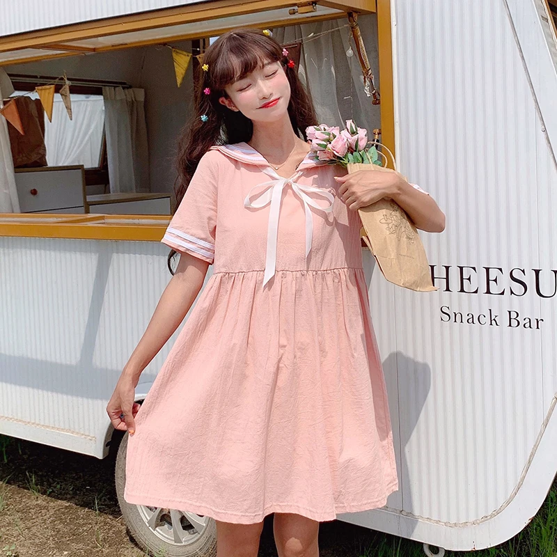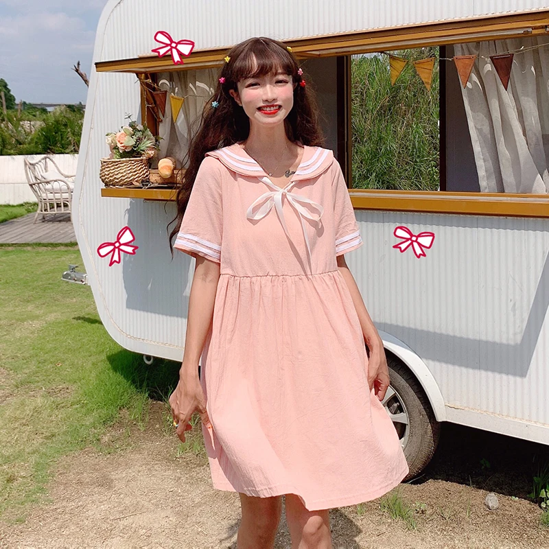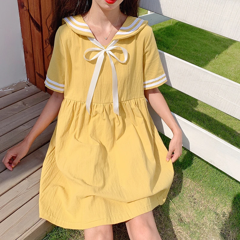 Весенне-летние женские японские мягкие милые платья для девочек с воротником в морском стиле, свободные платья с короткими рукавами для студентов, винтажные платья в стиле Лолиты