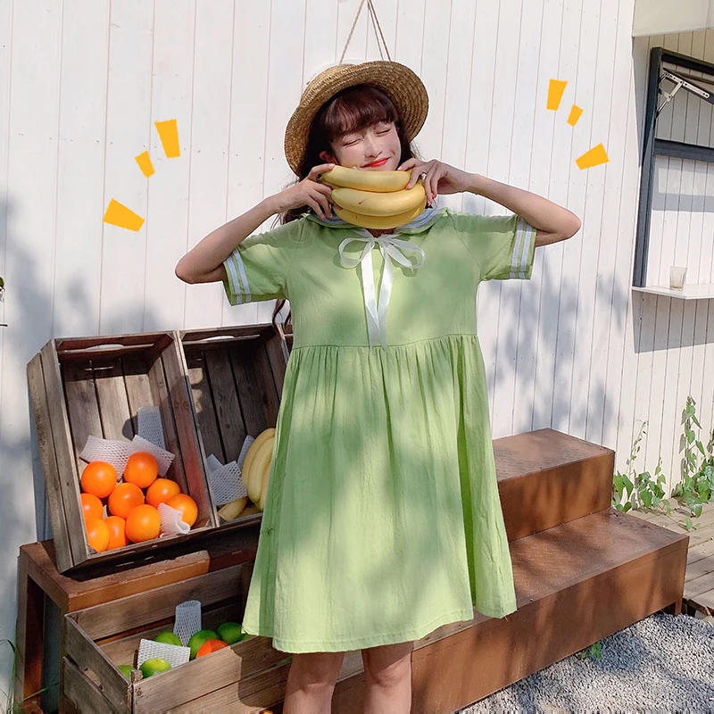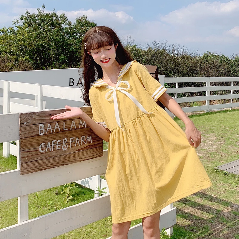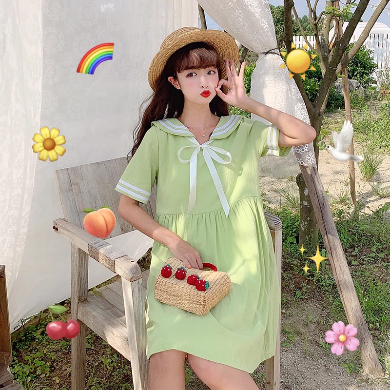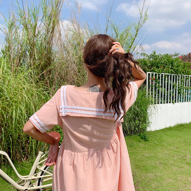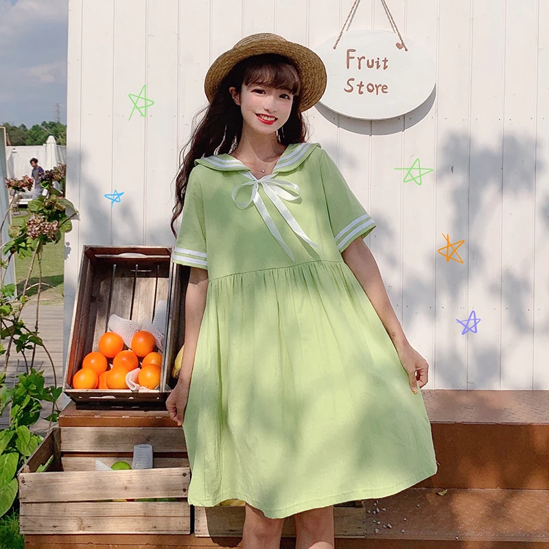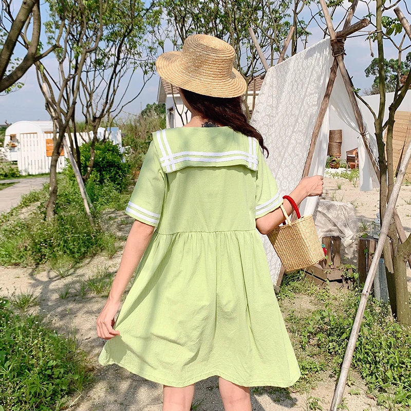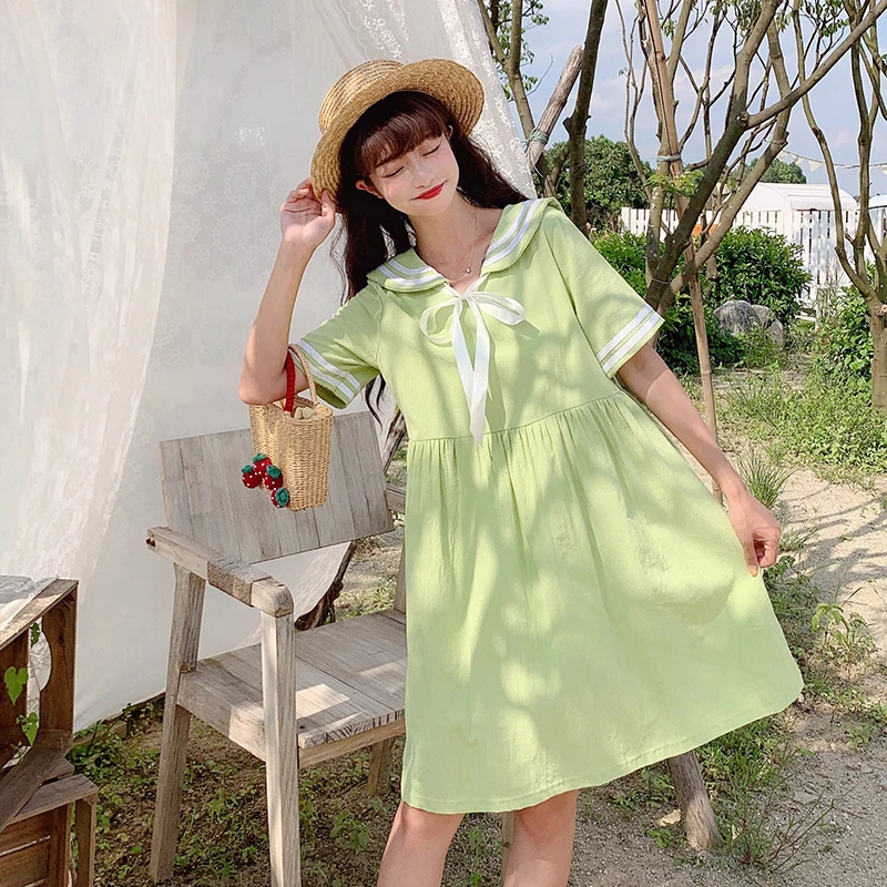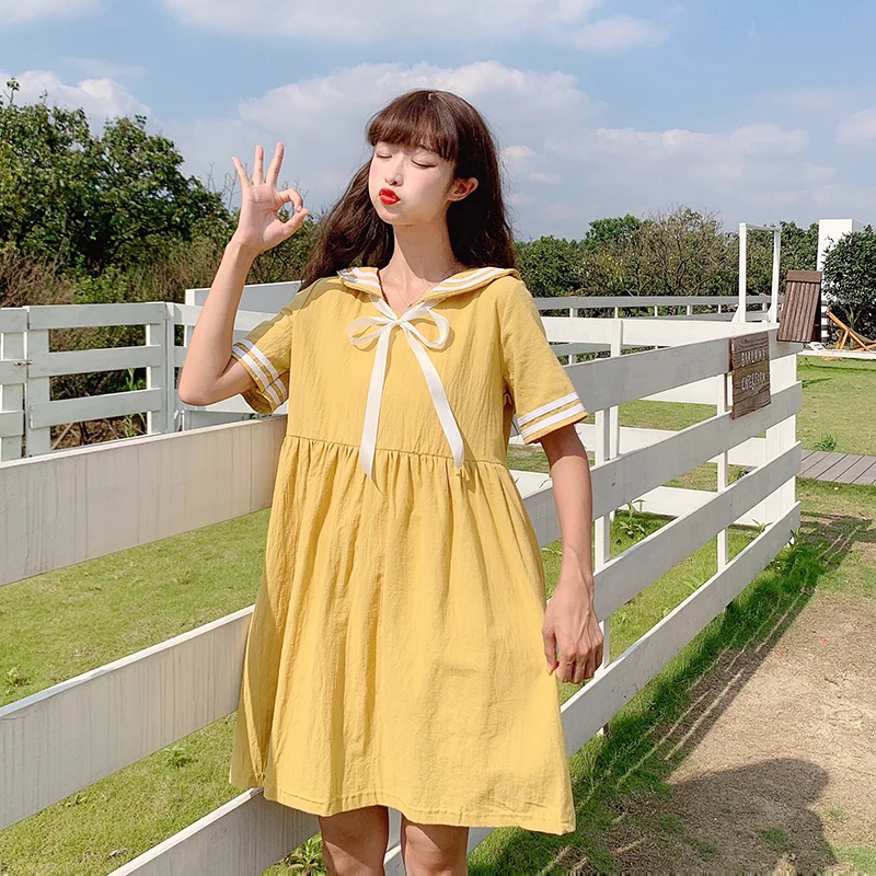 Весенне-летние женские японские мягкие милые платья для девочек с воротником в морском стиле, свободные платья с короткими рукавами для студентов, винтажные платья в стиле Лолиты