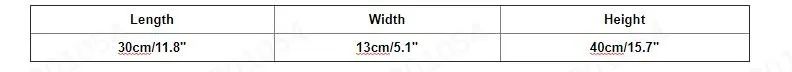 Размер: 30 см (Д) x13см (Ш) x40см (В)/11,8 (Д) x5.1 (Ш) x15.7 (в)"