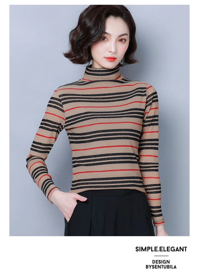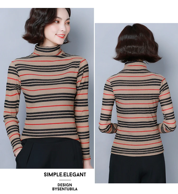 JUAYKALA Женская плюс бархатная рубашка с высоким воротником полосатая яркая
