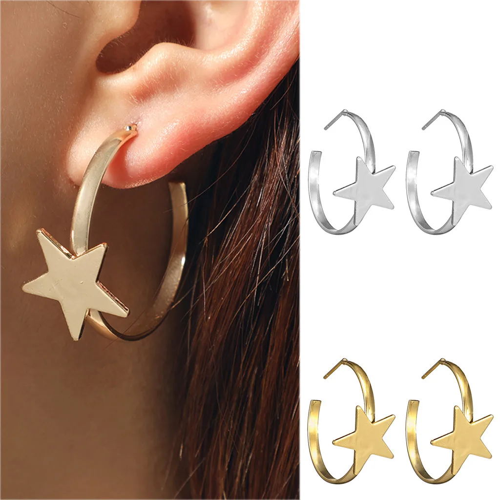 Женские модные геометрические металлические звезды круглые пятиконечные звезды ювелирные изделия